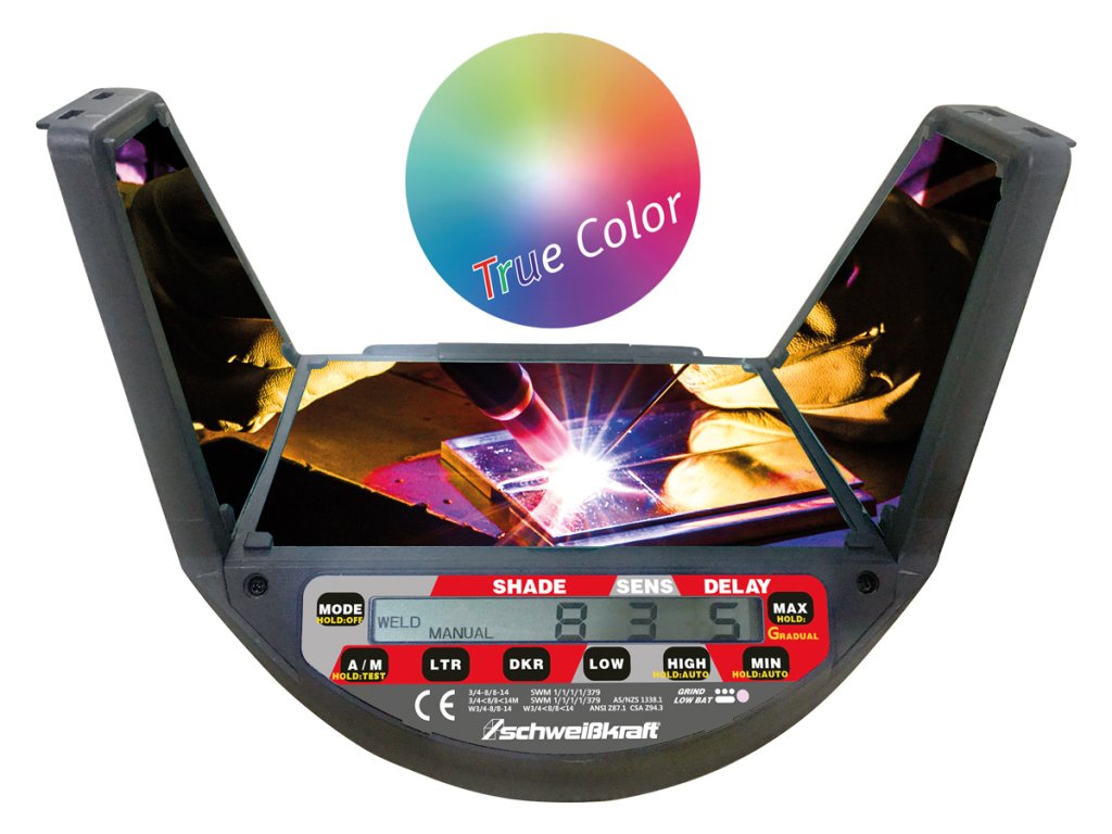 Obsah dodávky: Vhodná pro svařování a broušení elektrodami, MIG/MAG a TIG (WIG);Kazeta True Color poskytuje pohled na svařování v reálných barvách;Pohodlné svařování se zorným polem 180°;Boční průzorová okna s automatickým ztmavením;Digitální kazeta pro jednoduché a intuitivní ovládáníDoplňkové parametry