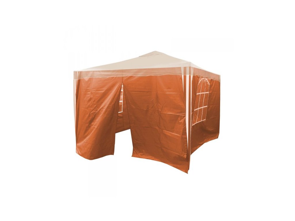 Bočné obloženie pre pavilóny, altánky veľkosti 3 x 3 m. Obloženie je z nepremokavého nylonu. Horná časť sa uzatvára suchým zipsom. Bočné steny na záhradný pavilón 3x3 m, oranžové, 4 ks