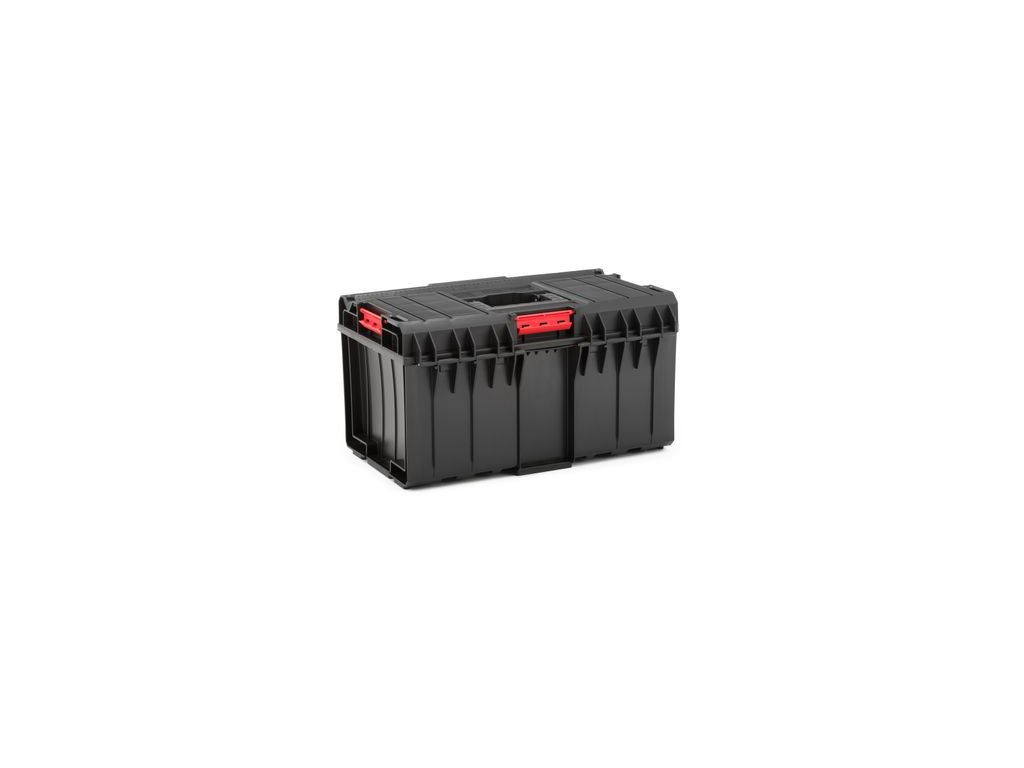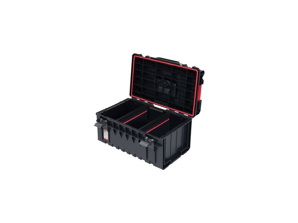 - Rozmery: 585 x 385 x 320 mm - Vnútorné rozmery: 519 x 305 x 245 mm - objem: 38 lONE 350 je veľký box na náradie s objemom 38 l. Je schopný poňať veľké množstvo náradia. Každá skrinka na náradie je vybavená flexibilným tesnením, ktoré poskytuje úplnú ochranu proti prachu a vode. Taktiež je vybavená dvomi nastaviteľnými priehradkami - jedna s elastickými popruhmi a druhá s priehradkou Multi, čo uľahčuje udržiavanie poriadku vo vnútri skrinky na náradie vďaka rôznym držiakom na ručné náradie. Odnímateľnú multi prepážku možno použiť ako samostatný nosič náradia. Veko vo verzii Basic je vybavené funkčným otvorom na rezanie a meranie. Vystužené veko a telo zaisťuje vysokú nosnosť (50 kg) a odolá tlaku až 120 kg, čo vám dáva možnosť vytvoriť si pohodlnú pracovnú plošinu.