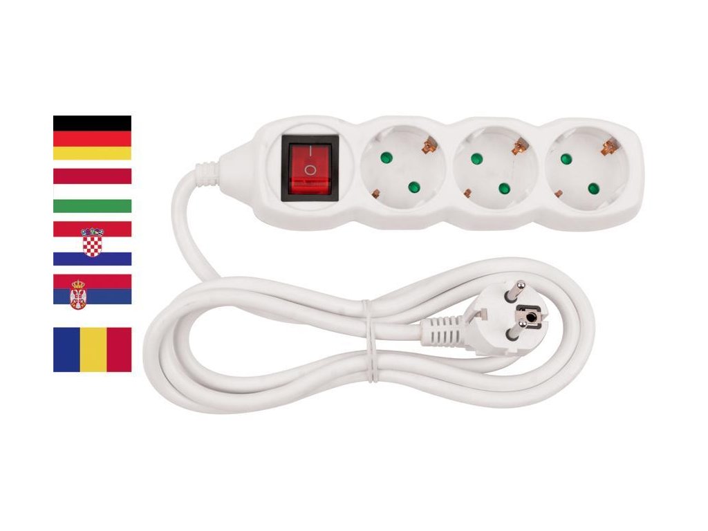 Cable GERMAN socket Strend Pro DG-803BK 1,50 m, 3 sockets, HU, RO, SRB, CRO + switch