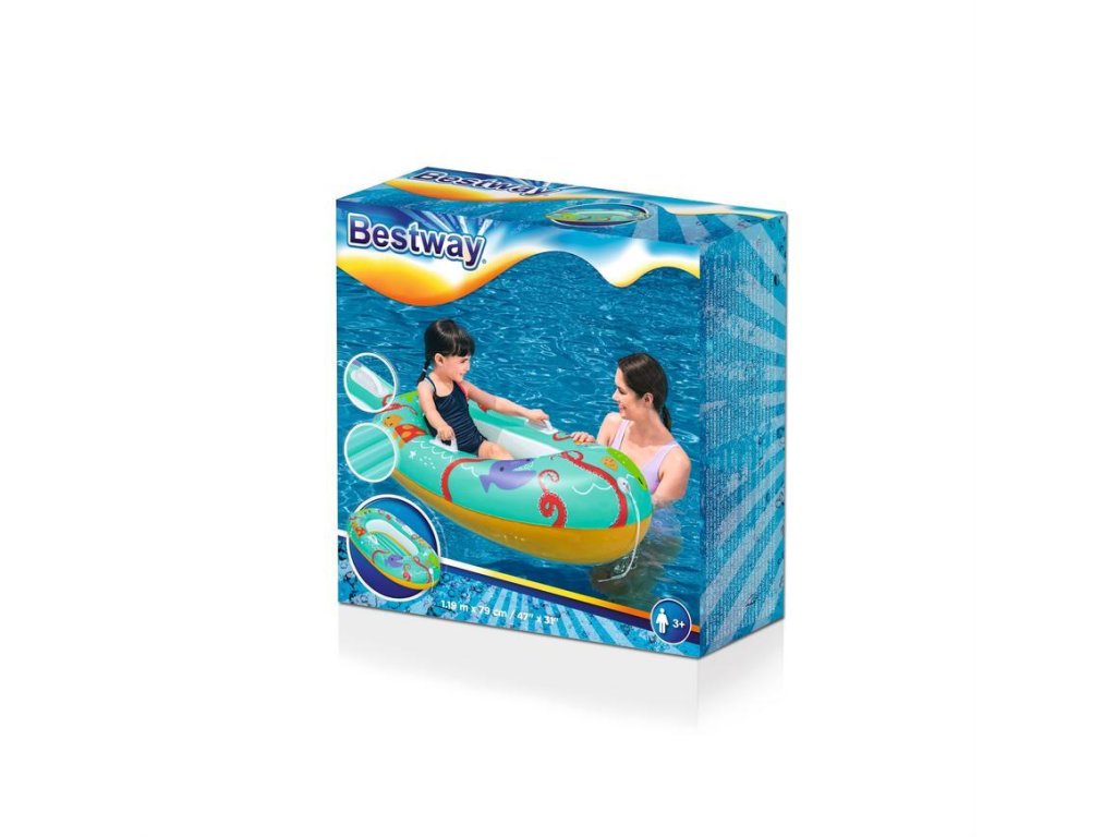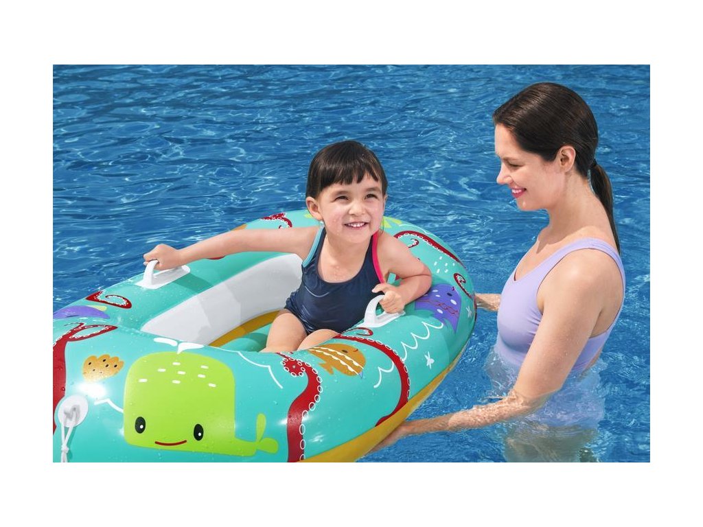 Detský nafukovací čln Bestway® Happy Crustacean je vhodný pre deti od 3 - 6 rokov. Nafukovacie dno zaisťuje väčšie pohodlie. Čln je tiež vybavený praktickými držadlami umiestnenými na bokoch. Vaše dieťa si užije slnečné dni plné zábavy na vode. Rozmery: 119x79 cm.