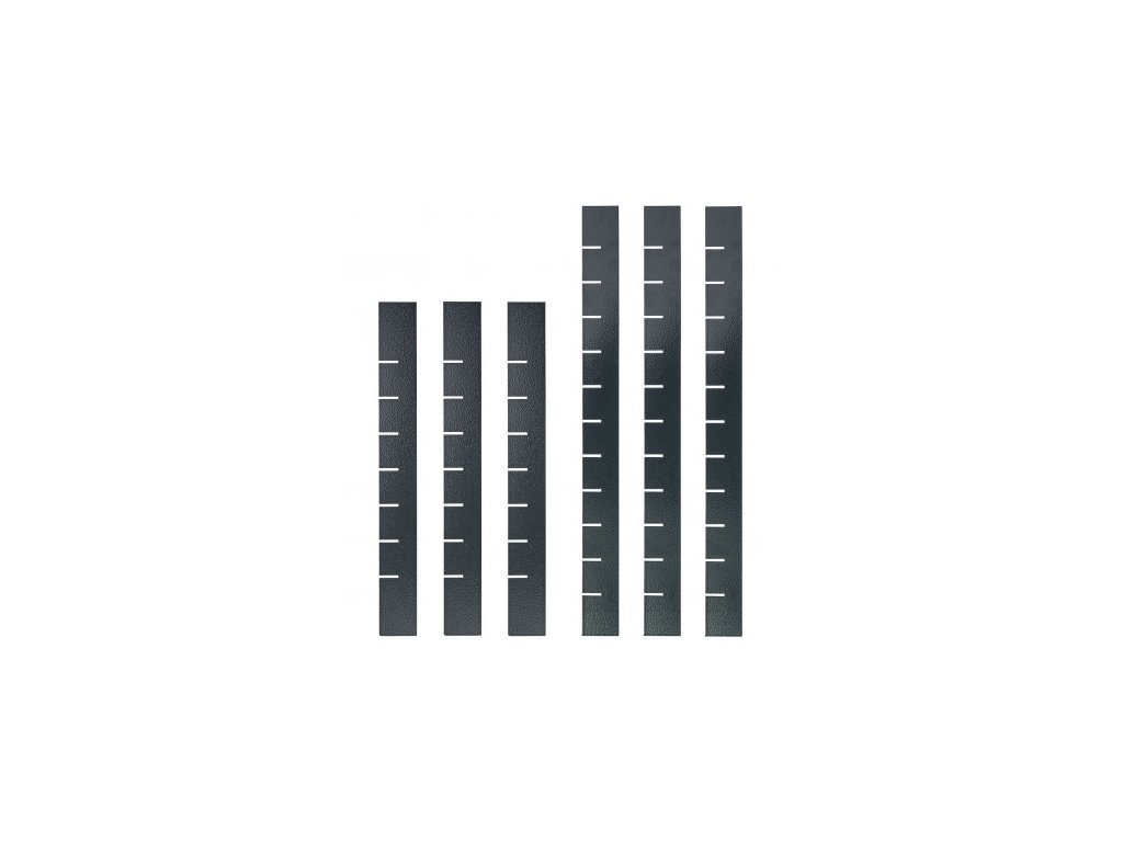 Praktické a opakovane nastaviteľné prepážky na nové veľkosti zásuviek do rôznych pracovných stolov. Oceľový plech ošetrený práškovou farbou. Vhodné pre Dielenský vozík s náradím (220 ks) Carlos (kód tovaru: 20896D) a Dielenský vozík na náradie Carlos, 7-zásuvkový (kód tovaru: 20897D). Deliace prepážky do zásuviek dielenského vozíka na náradie Carlos