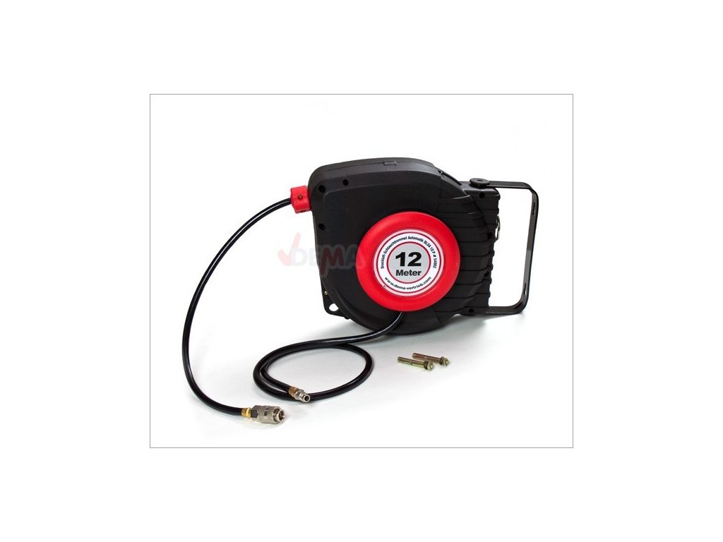 Samonavíjací bubon s 12 m hadicou. Bubon je vyrobený z kvalitného a odolného plastu. Súčasťou balenia sú kolíky na montáž bubna na stenu.
