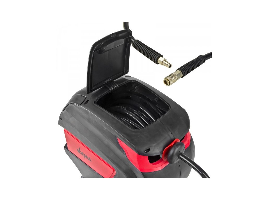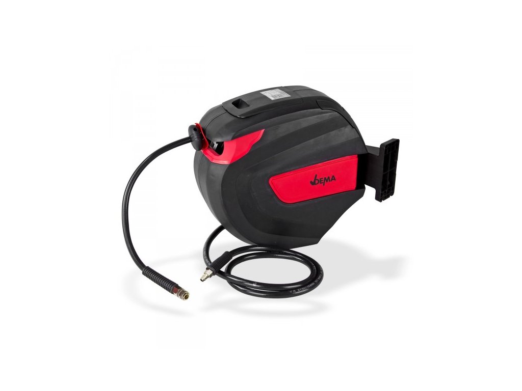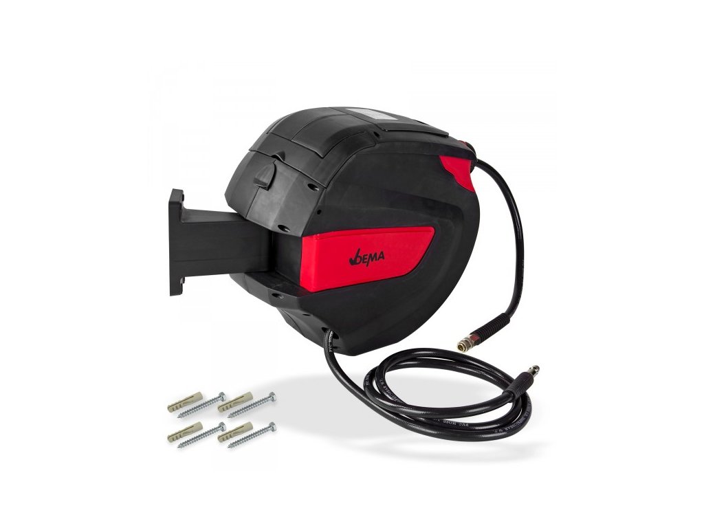 Samonavíjacia 25 m pneumatická hadica, hrúbka 15 mm. Univerzálne použitie v dielni. Možnosť montáže na stenu s držiakom otočným o 180°, vrátane prostriedkov na pripevnenie. Hadica vrátane zaisťovacej vsuvky a objímky.
