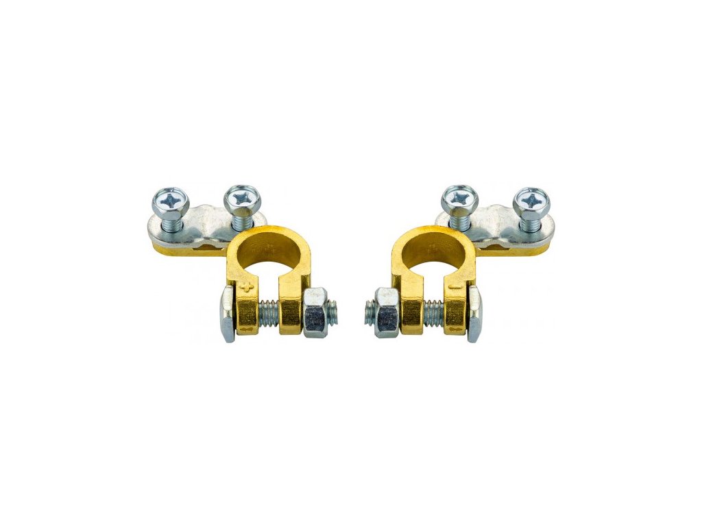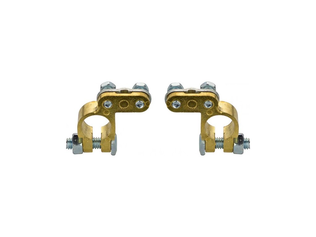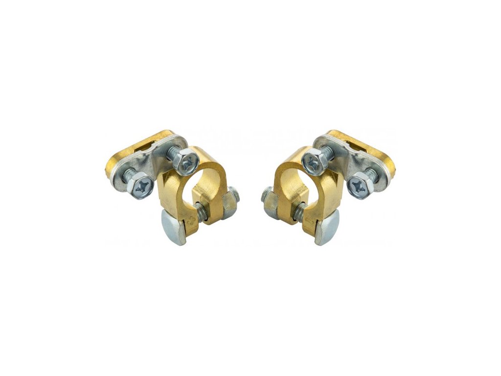 Batériové svorky zahnuté na batérie osobných automobilov s 16/18 mm batériovým pólom. Materiál: mosadz