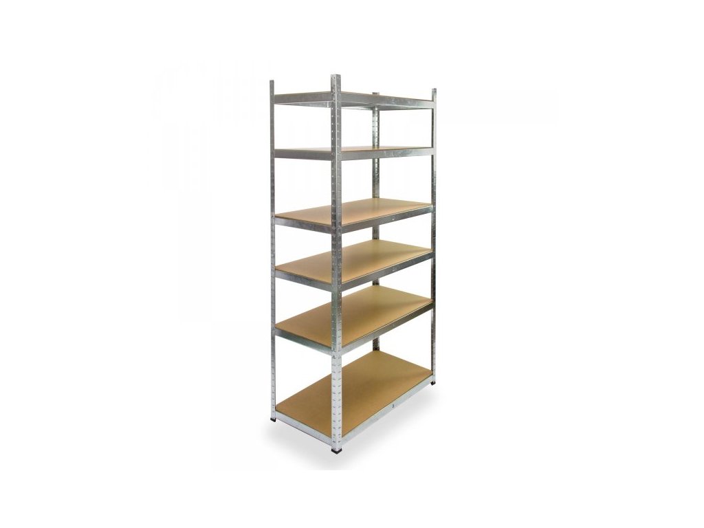 Konštrukcia z pozinkovanej ocele s jednoduchou montážou. Police sú vyrobené z MDF dosky. Ideálne úložisko do skladu, pivníc alebo do kancelárie. S možnosťou prestavenia na dielenský stôl. Bezskrutkový regál 6P 65 kg 200x100x50 cm