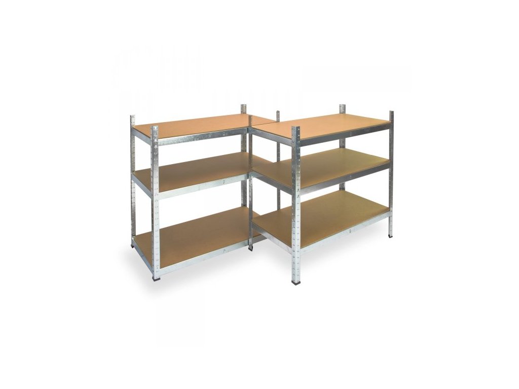 Konštrukcia z pozinkovanej ocele s jednoduchou montážou. Police sú vyrobené z MDF dosky. Ideálne úložisko do skladu, pivníc alebo do kancelárie. S možnosťou prestavenia na dielenský stôl.