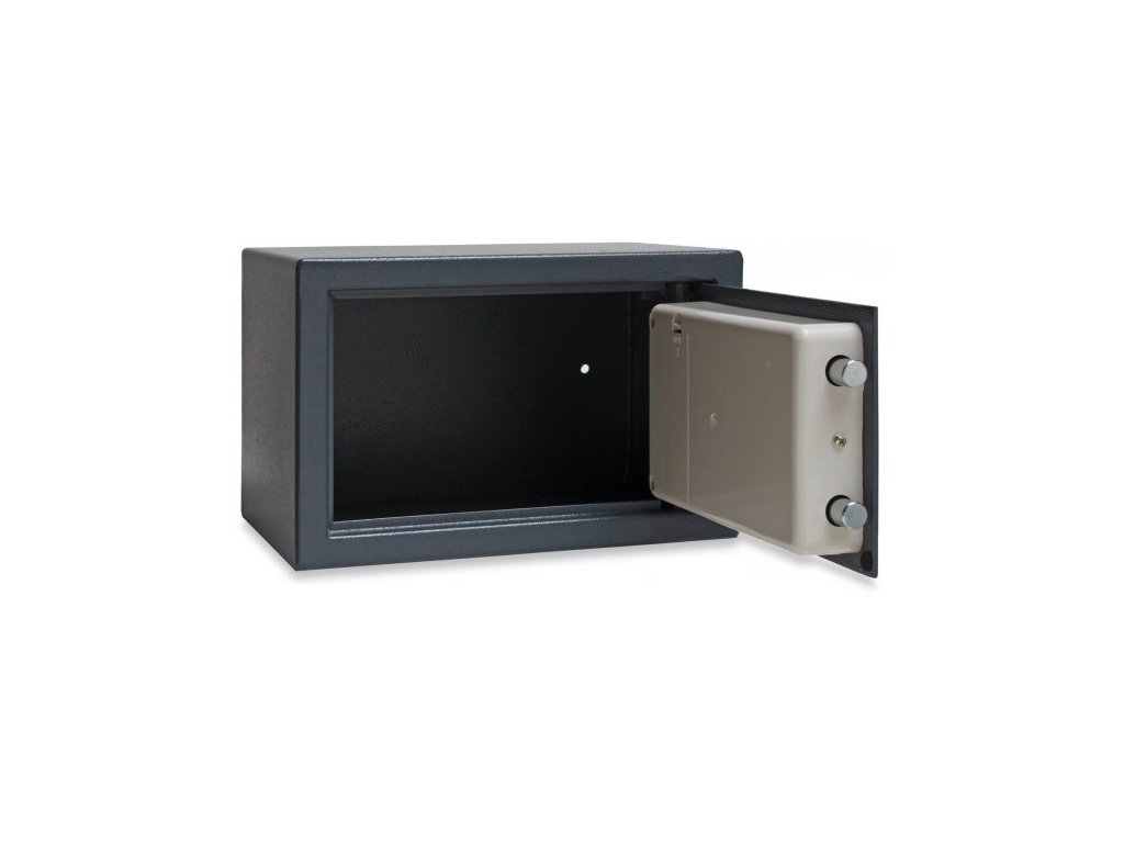 Trezor v masívnom vyhotovení, vhodný aj na inštaláciu do vozidla, karavanu. Mechanicko-elektronický zamykací systém s dvoma skrutkami, s kombinovaným zámkom a bezpečnostným okrúhlym kľúčom (v prípade zabudnutia kódu). Bez certifikátu proti vlámaniu a ohňu. Digitálny trezor 12 litrov 31x20x20 cm