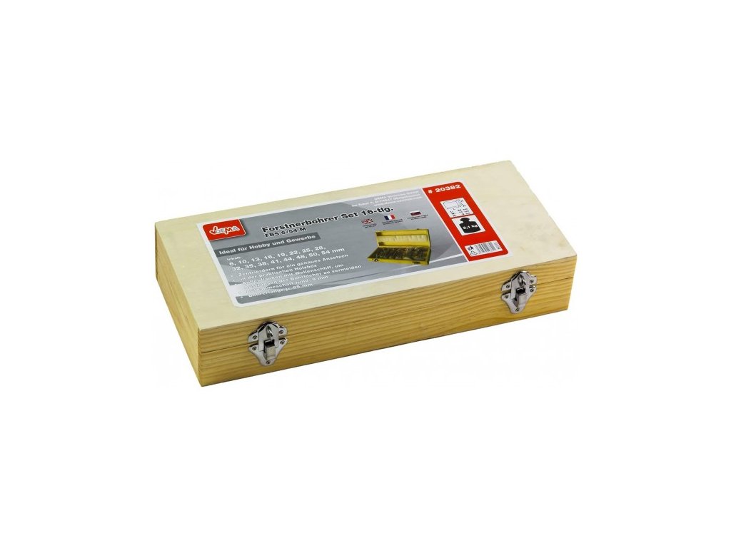 Forstnerove vrtáky v drevenom boxe, 16-dielna sada