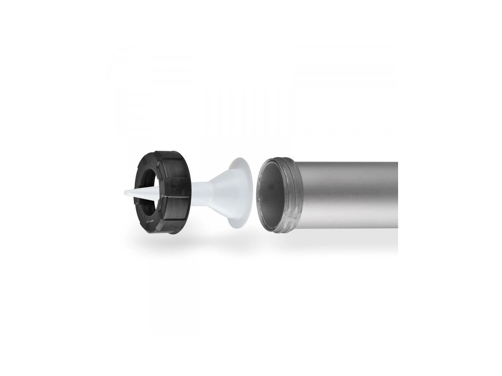 Kartušová pištoľ z hliníka vhodná na všetky štandardné kartuše do 600 ml. Obojstranný skrutkovací uzáver. Vrátane dýzy. Korpus: hliník