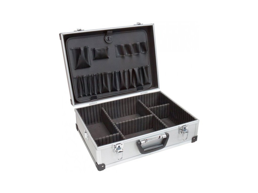 Kufor je uzamykateľný cez spony so zámkom a dvoma kľúčmi, má odnímateľný priečinok náradia so 17 priehradkami, súčasťou kufra je remeň cez plece.