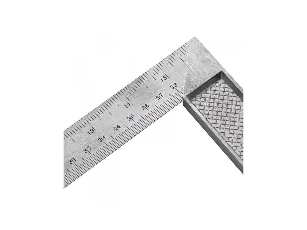 Príložný uholník s 1 ramenom z nehrdzavejúcej ocele so stupnicou v „cm“ a v „palcoch“. Druhé rameno z hliníka.