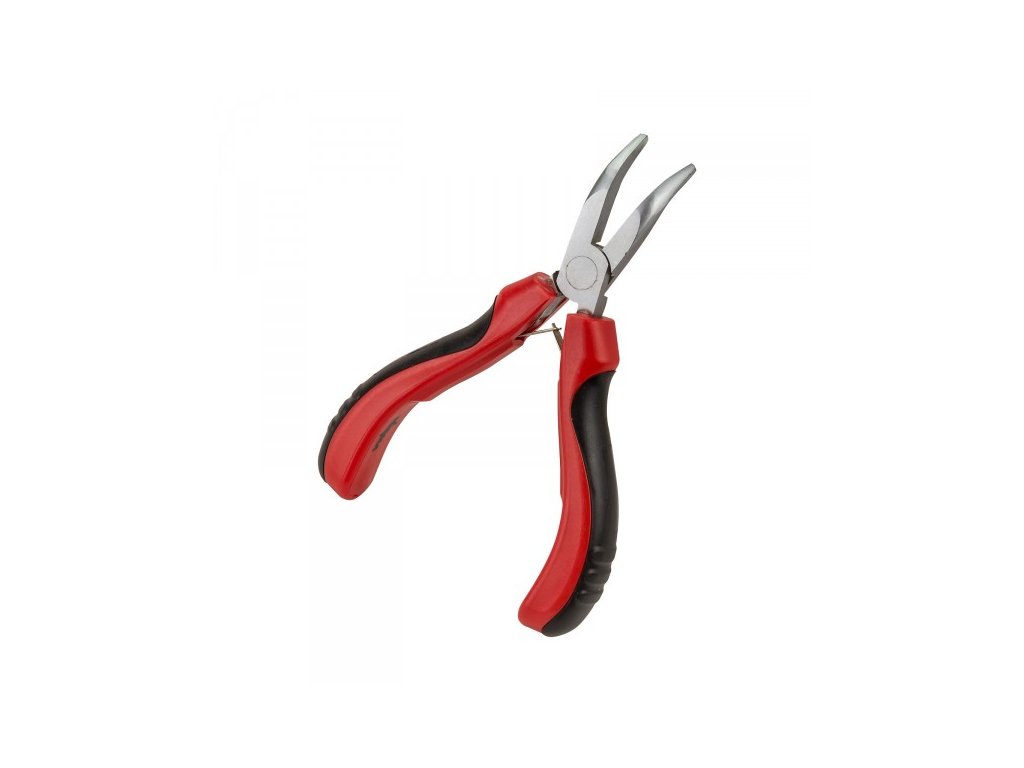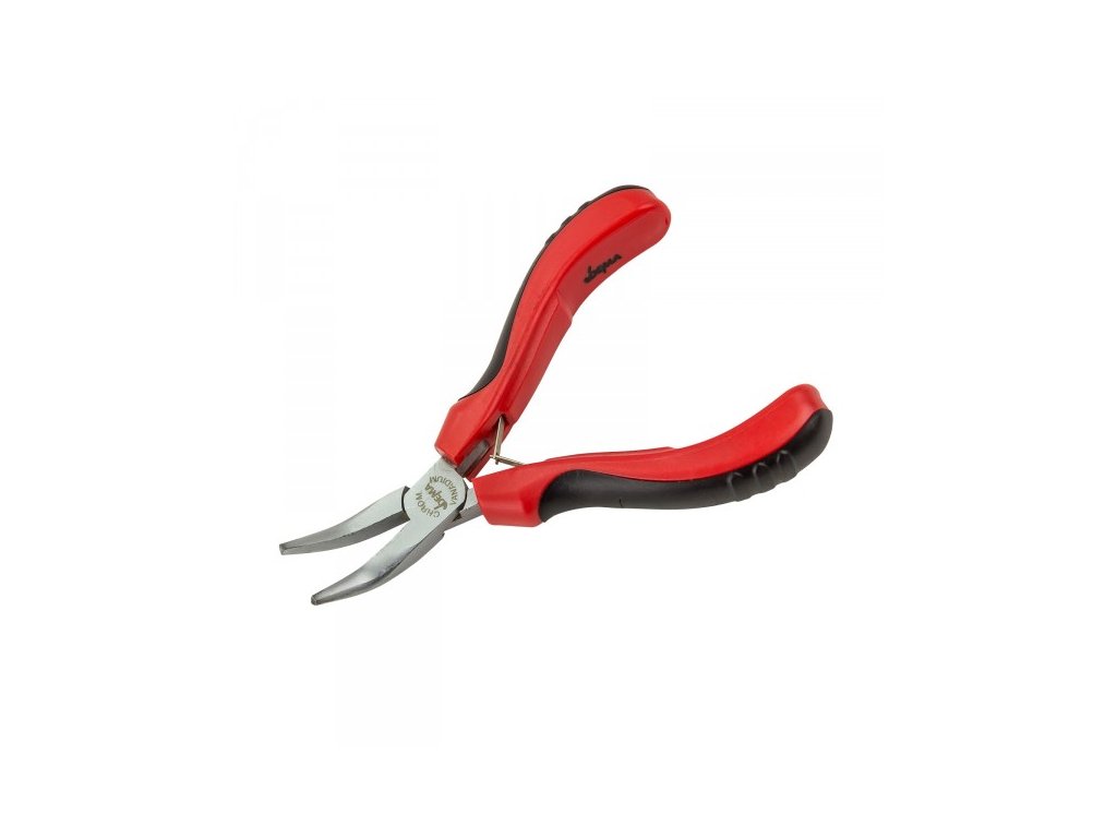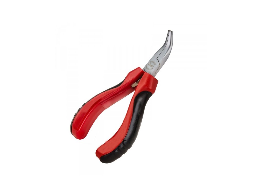 Kliešte s úzkymi čeľusťami z chróm-vanádiovej ocele, ohnuté hladké prevedenie, s napínacou pružinou, dvojzložkové rukoväte pre lepšie držanie – protišmykové, s dlhou životnosťou (bez zmäkčovadiel), pachovo neutrálne. Kliešte polguľaté zahnuté hladké 125 mm