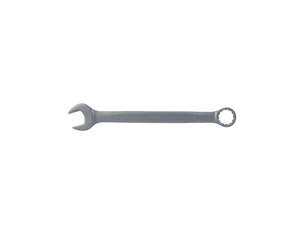 Prstencovo-vidlicový kľúč z chróm-vanádiovej ocele, ohnutý o 15° a vybavený dvanásťhranným upnutím, čím umožňuje prácu aj na ťažko dostupných miestach. Matný, pochrómovaný povrch.