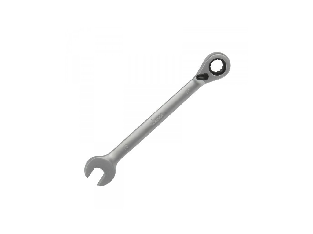 Očko-vidlicový kľúč z chróm-vanádiovej ocele s prepínacou račňou so 72 zubami, umožňuje jednoduchú prácu aj na ťažko dostupných miestach. Očko-vidlicový prepínací račňový kľúč 10 mm