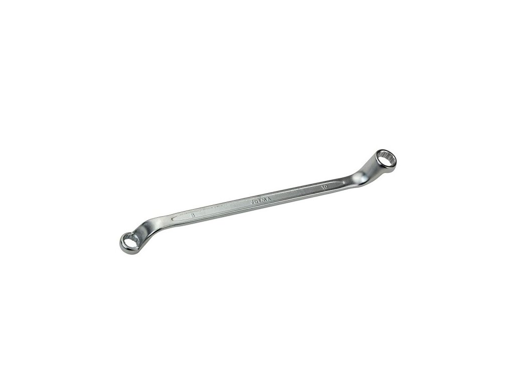 Dvojitý prstencový kľúč z chróm-vanádiovej ocele. Hĺbkovo zalomené prevedenie, pochrómovaný povrch. Dvojitý prstencový kľúč 8 x 10 mm, zalomenie 75°