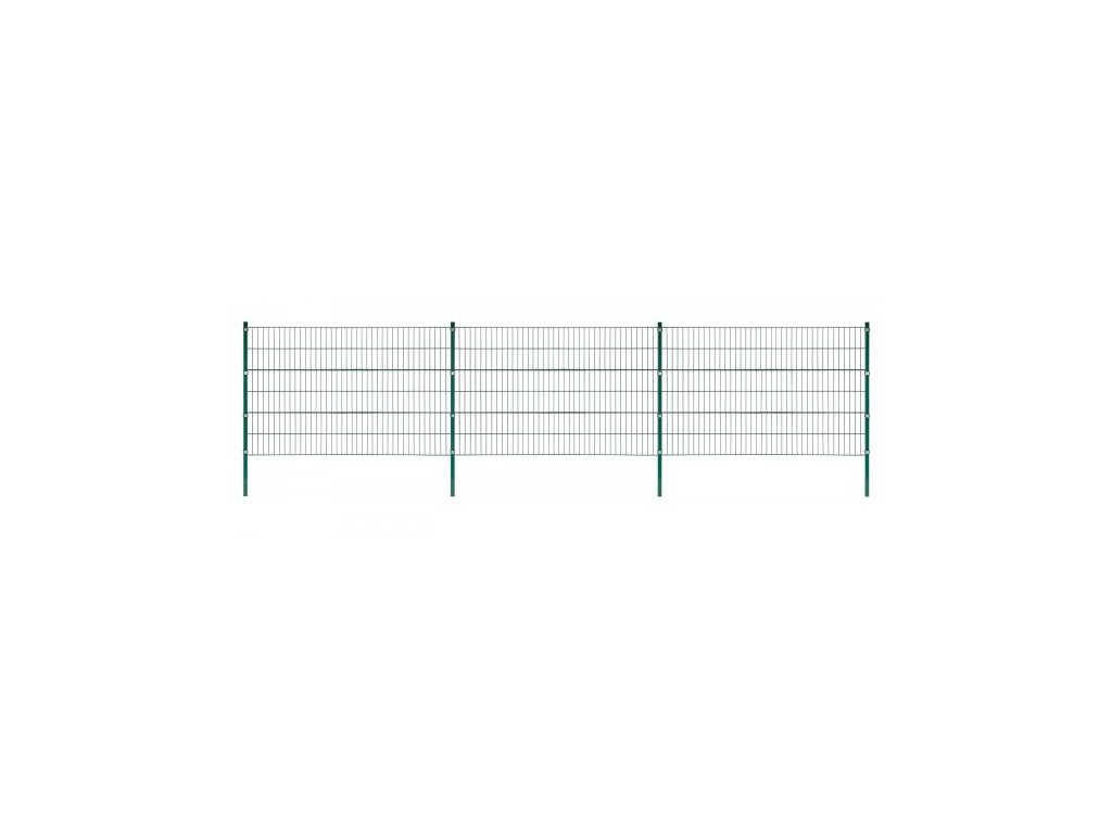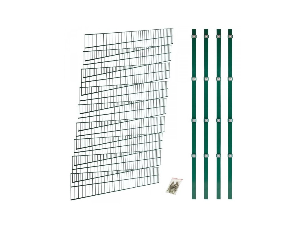 Zelené oplotenie o rozmere 6 x 1,2 m so stĺpikmi, dvojitými panelmi a upevňovacím materiálom. Ideálne na oplotenie pozemku, ako záhradný plot, na oplotenie detského ihriska, ohrád, pasienkov a podobne. Základný pozinkovaný materiál s práškovou povrchovou úpravou. Skrutky a upínacie platne z ušľachtilej ocele. Stavebnicová konštrukcia, vertikálne skoky panelov na vyrovnanie stúpania alebo klesania. Balenie obsahuje 9 plotových panelov, 4 stĺpiky a 18 spojovacích skrutiek. Jednoduchá montáž. Dodáva sa v demonte.