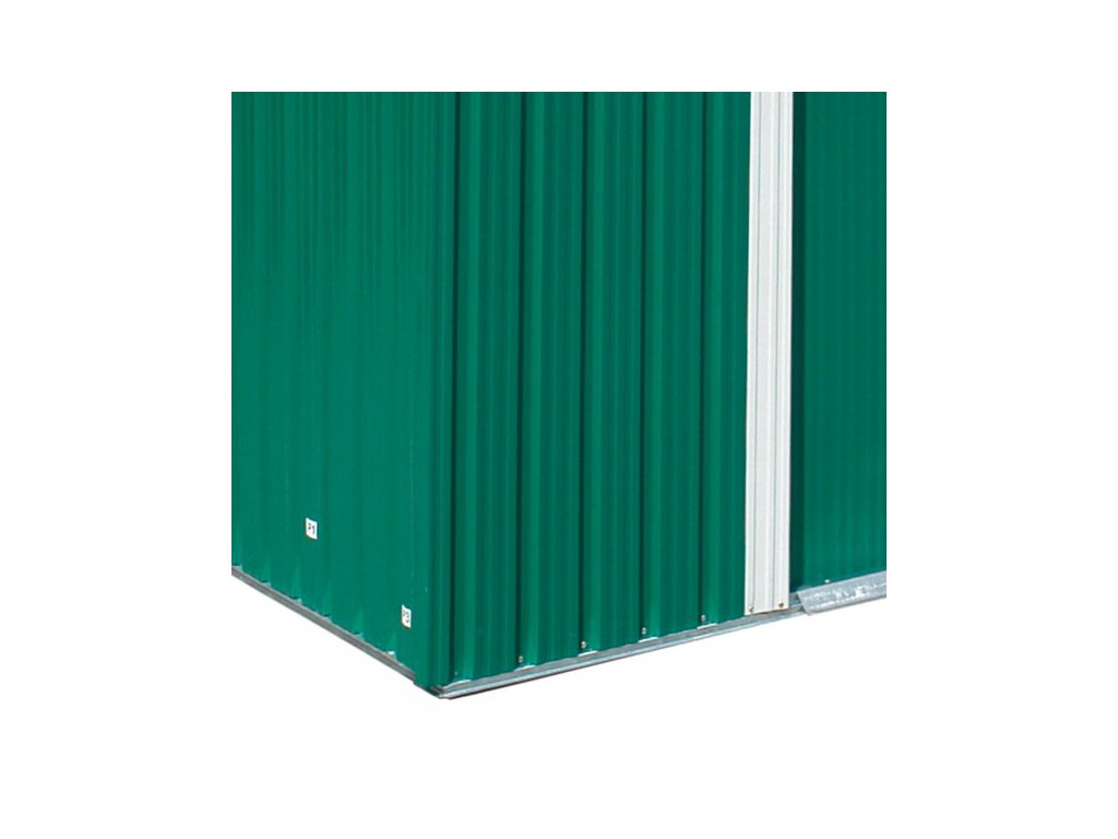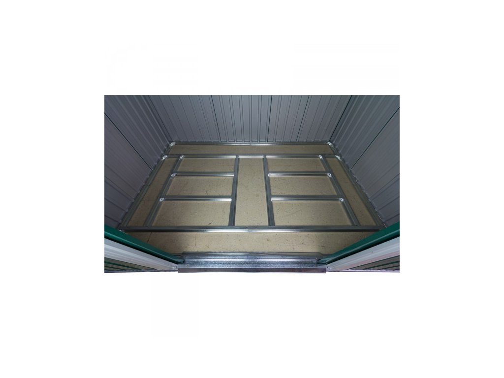 Domček chráni záhradné náradie voči dažďu a snehu, má pozinkovanú základňu, ktorá umožňuje montáž na drevenú podlahu (nie je súčasťou balenia). Celokovový, sedlová strecha, vetranie v hrebeni strechy. Dodáva sa v demonte. Kovový záhradný domček 4,8 qm Leeds, zelený