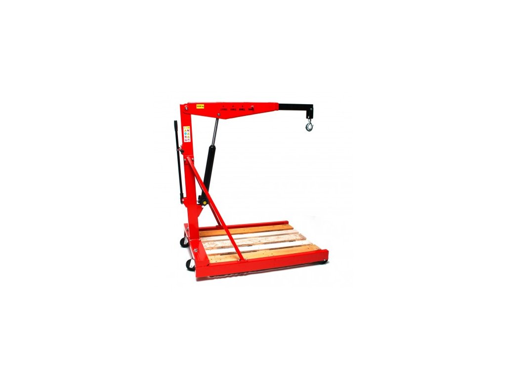 Pojazdný dielenský žeriav možno umiestniť priamo nad euro paletu. Ľahké manévrovanie vďaka 4 veľkým polyamidovým kolesám (2x pevné a 2x otočné koliesko). Bezpečnostný hák, 4-smerné predĺžiteľné nakladacie rameno. Citlivé ovládanie pohybu zdvíhania a spúšťania pomocou sklopnej, pevnej zdvíhacej tyče a veľkej ryhovanej skrutky. Paleta nie je súčasťou balenia. Dodáva sa v demonte.