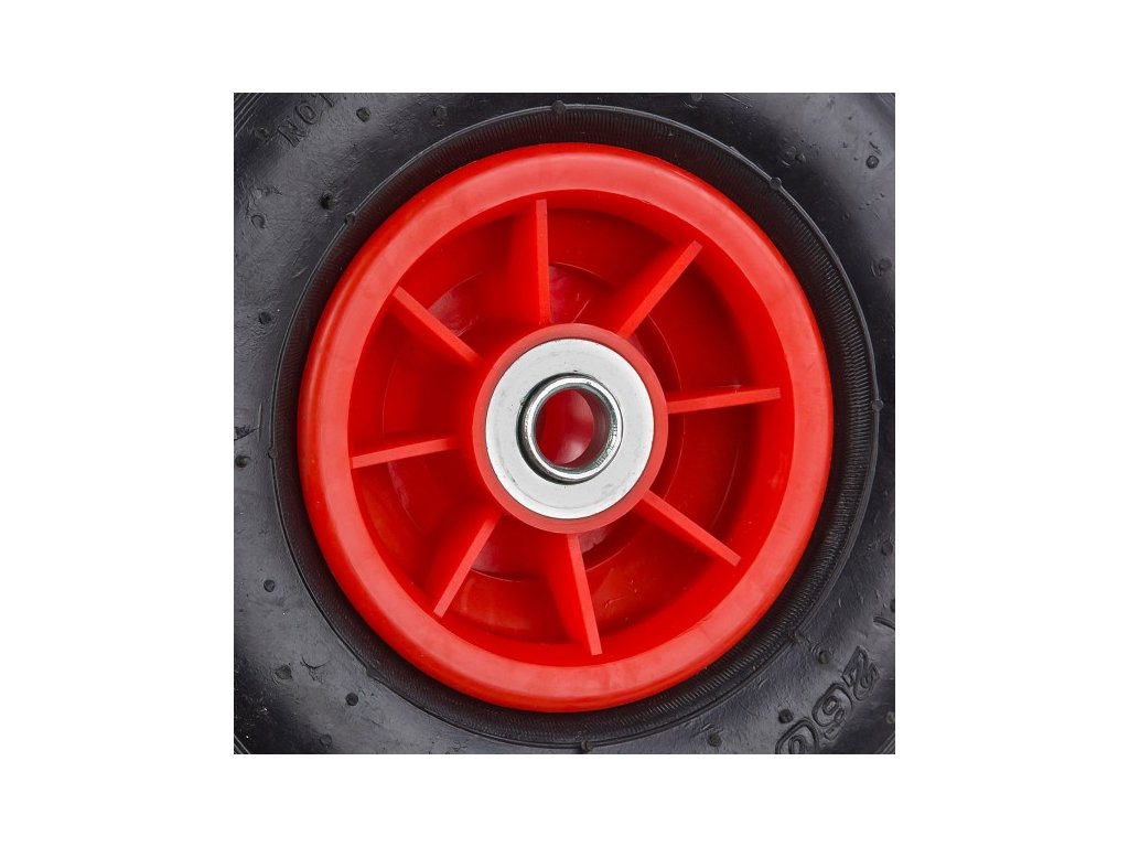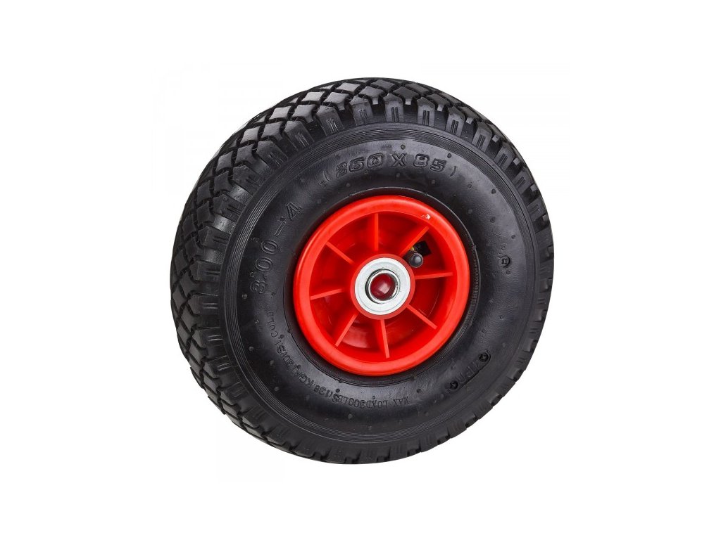 Náhradné vzduchové koleso s guľovým ložiskom. PVC červený disk. Koleso je vhodné pre ručné vozíky, prepravné vozíky, kompresory a iné. V balení jedno koleso.