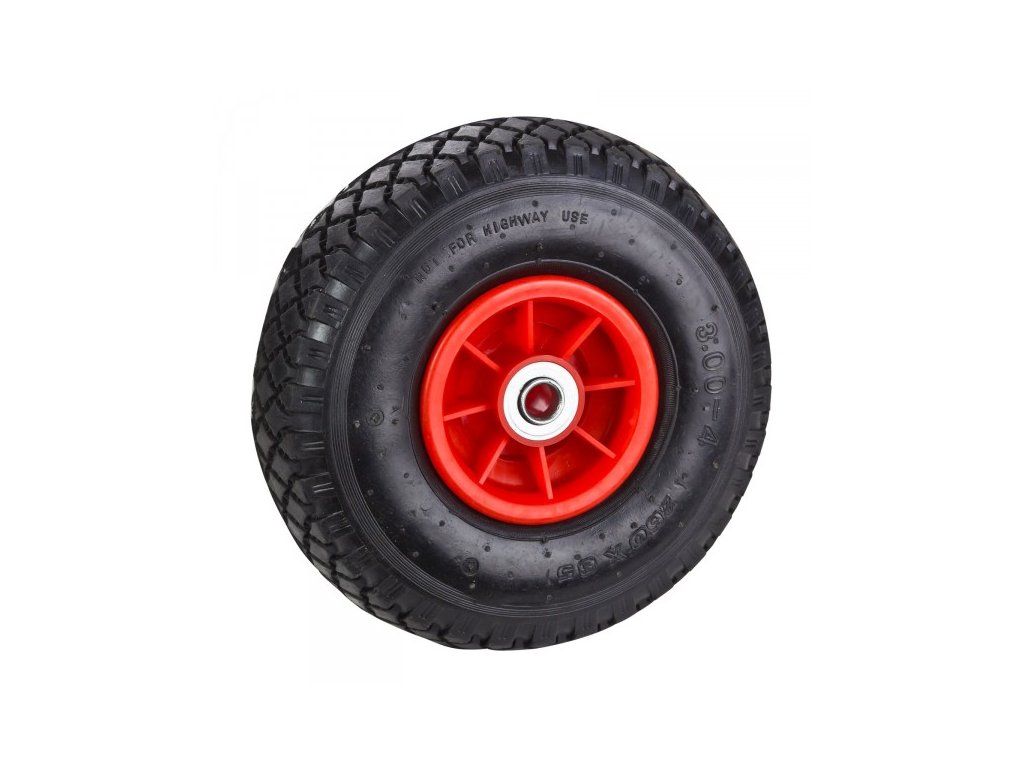 Náhradné vzduchové koleso s guľovým ložiskom. PVC červený disk. Koleso je vhodné pre ručné vozíky, prepravné vozíky, kompresory a iné. V balení jedno koleso. Nafukovacie koleso s guľôčkovým ložiskom pre vozík / fúrik 3.00-4, červené