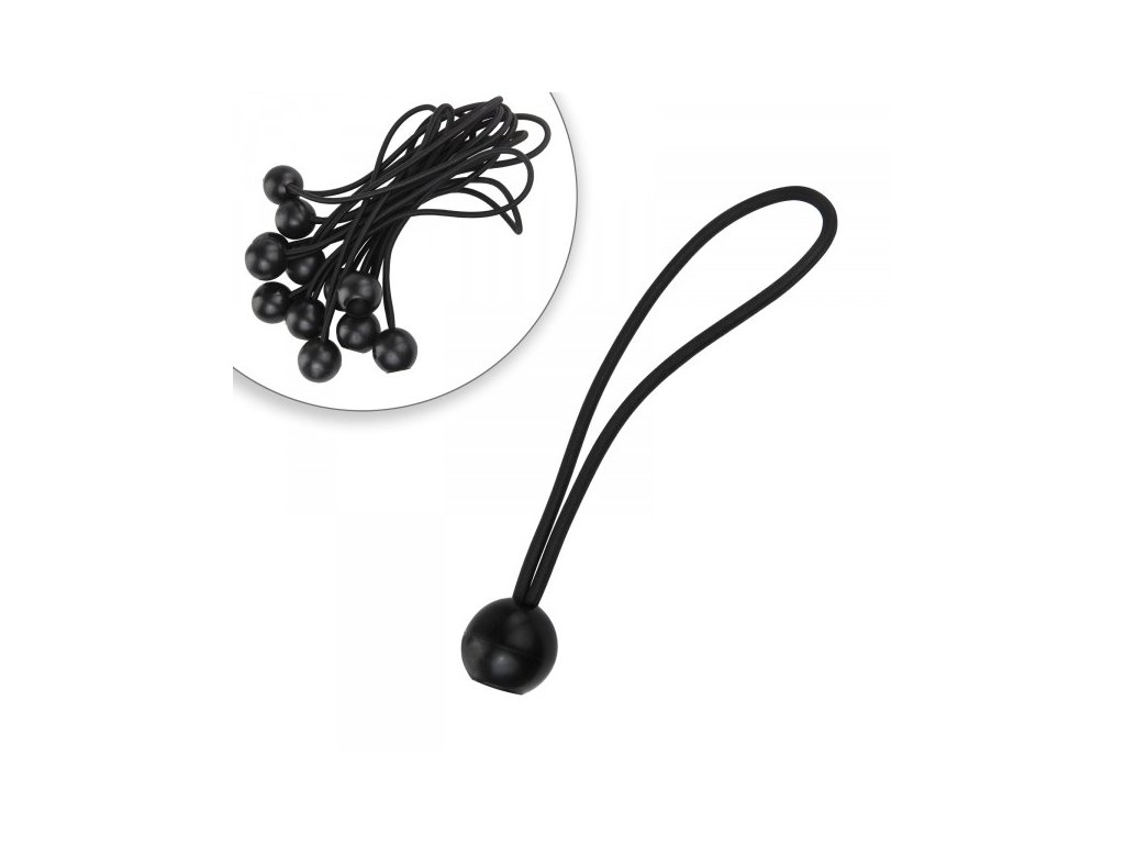 Napínač plachiet s plastovou guľkou (v balení 12 kusov) v čiernej farbe. Vhodný na tieniace plachty, dovolenku, kempovanie, cestovanie, bicykel/motocykel (batožinový nosič), príves. Kaučuková vnútorná gumová vrstva, polymérové opláštenie, plastová gulička.