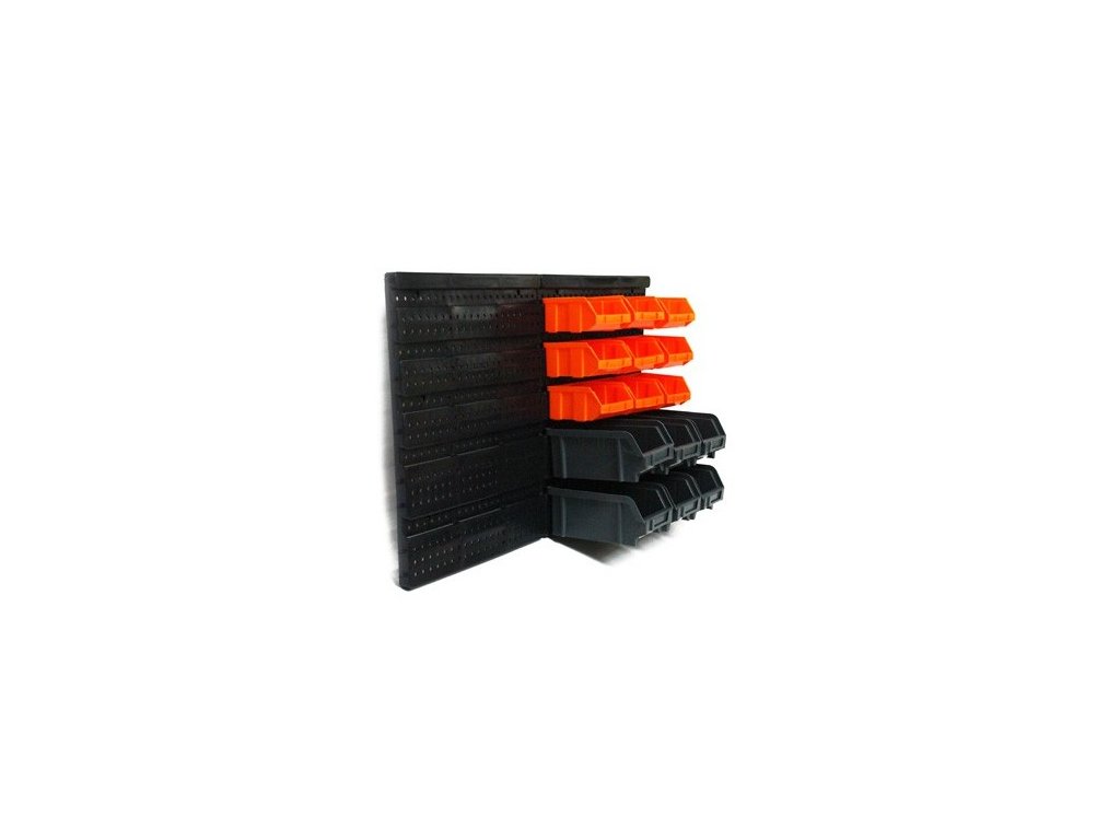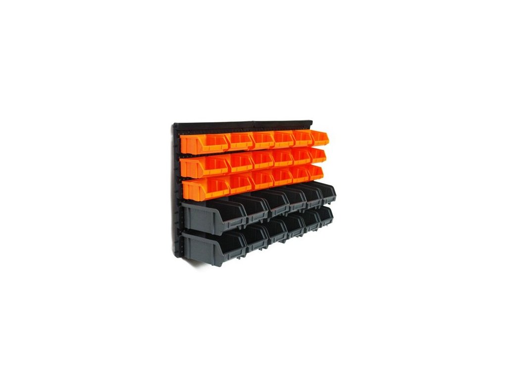 Nástenný závesný regál / organizér s 30 boxami na skrutky a náradie KSR30