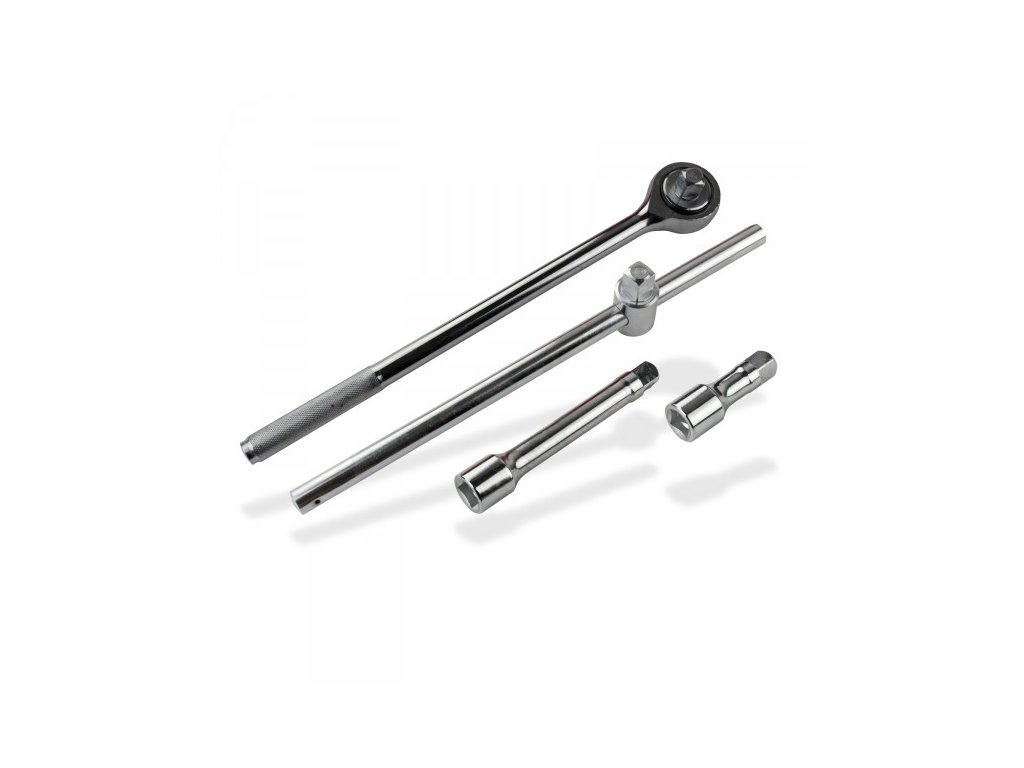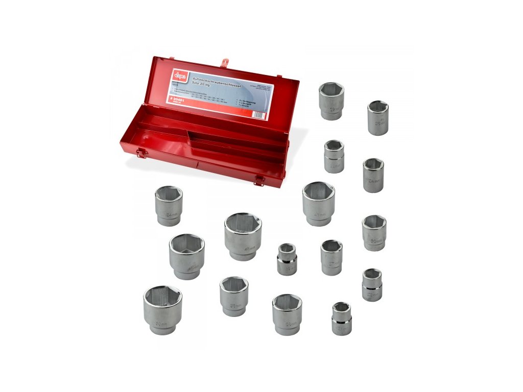Súprava šesťhranných nástrčkových kľúčov z ocele s 3/4" upínaním. Rukoväť račne s protišmykovou úpravou. Všetky použiteľné nástavce nástrčkových kľúčov s drážkou sa dajú bezpečne zablokovať. Račňa sa nastavuje na pravý/ľavý chod otočným prepínačom na hlave. Sada nástrčkových kľúčov s račňou 3/4", 20-dielna sada