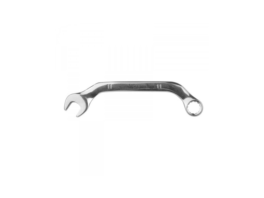Očko-vidlicový kľúč polmesiacového tvaru z kvalitnej chróm-vanádiovej ocele. Ideálny do dielne, domu, k hobby, do záhrady. Obzvlášť sa hodí na ťažko dostupné miesta v oblasti motorových vozidiel a reštaurovania veteránov. Lesklý povrch, 12-hranný prstenec, tvar C. Očko-vidlicový kľúč 11 mm polmesiacového tvaru
