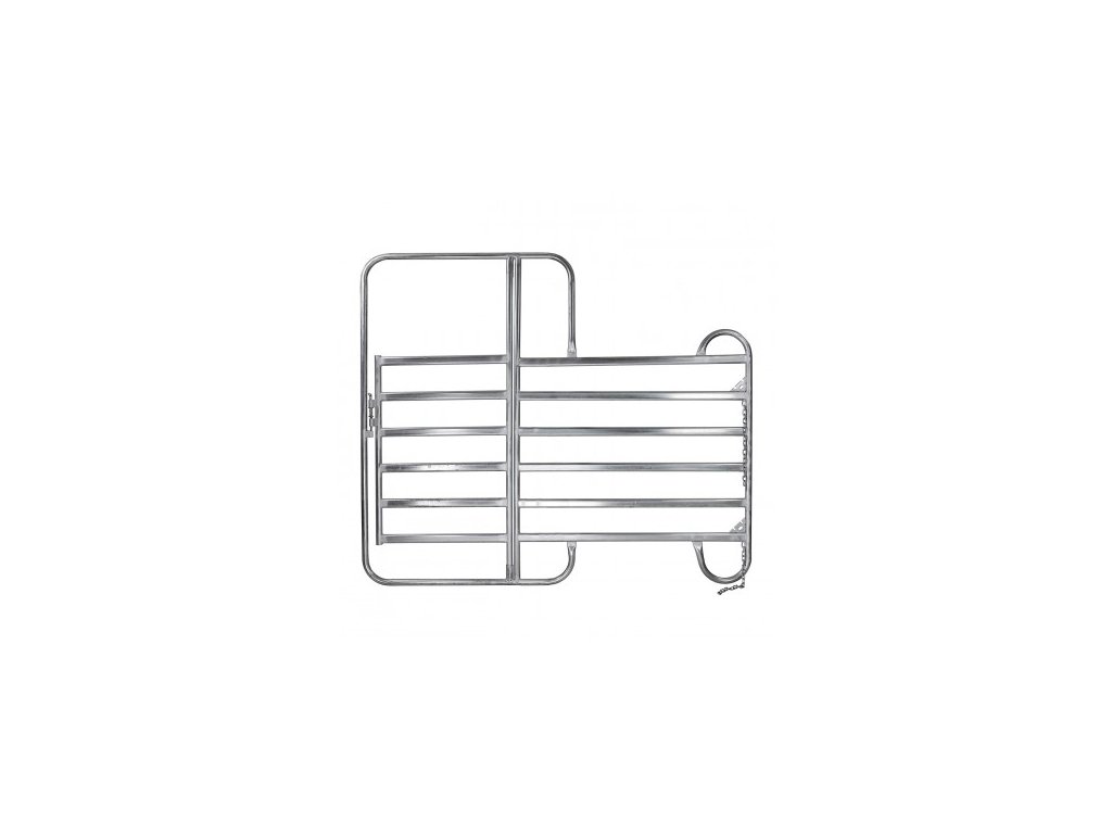 Panel s bránkou na ohradenie pastvín, na vytvorenie ohrady pre kone, kravy, ovce a iné zvieratá. Rýchla montáž a demontáž bez náradia. Upevnenie panelov medzi sebou pomocou reťazí. Brána sa dá otvárať z oboch strán. Bezpečná aretácia 15 mm pružinovými čapmi. Špeciálna rúrková geometria zaručuje vysoké zaťaženie konštrukcie a kompletné pozinkovanie zabezpečuje dlhú životnosť. Pri skladovaní nevyžaduje veľa miesta, bezpečné reťazové spojenie. Špeciálna rohová rúrková konštrukcia na ochranu zvierat. Nohy v tvare lyží pre vysokú stabilitu. Súčasťou balenia sú dve reťaze pre bezpečné prepojenie.