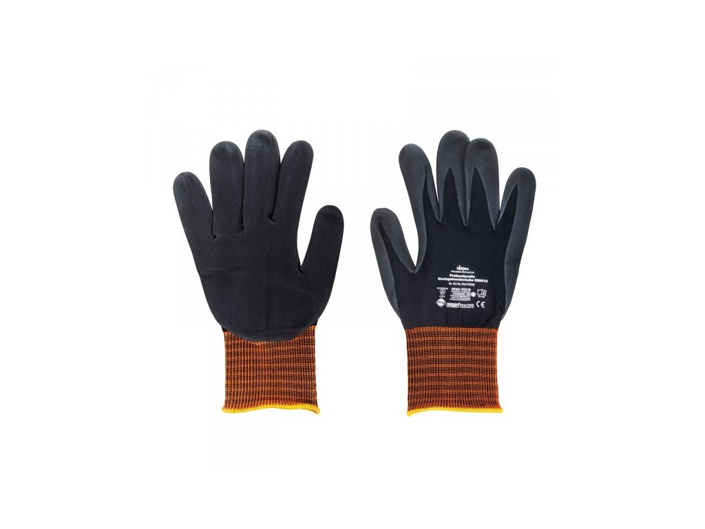 Prepracované rukavice, ktoré perfektne sedia a poskytujú spoľahlivú ochranu pri maximálnom komforte nosenia. Majú mnohostranné využitie vďaka vysokej kvalite materiálu a výroby – v dielni, na stavenisku, v sklade, vo výrobe, v reštaurácii, v záhradníctve, poľnohospodárstve a podobne. Otestované podľa noriem EN388:2016 4131X a EN420, majú textilnú pečať OEKO-TEX® Standard 100. Hygienická funkcia Sanitized® účinne predchádza rastu baktérií – aj pri zvýšenom potení – a tak zvyšuje pohodlnosť pri nosení. Vhodné aj na zaolejované, zamastené a mokré povrchy. Veľmi dobrá hmatateľnosť, priedušné, ultraľahké, odvádzajúce teplo. Potiahnuté vrstvou nitrilovej mikropeny, veľmi tenké, s priedušnosťou 360° a vysokou odolnosťou proti oderu.