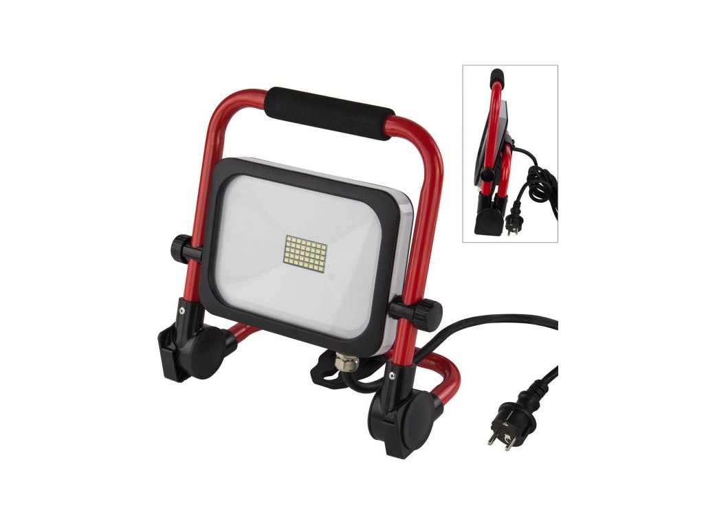 Reflektor s LED/SMD ideálny na vnútorné osvetlenie a osvetlenie objektov. Moderný vzhľad, plochý kryt, sklo odolné proti teplu, ABS/hliníkový kryt, sklápací rám z kovových rúrok, sklopiteľný reflektor, s možnosťou zavesenia na stenu. Dlhý prívodný kábel so zástrčkou. Prenosný LED stavebný reflektor 20 W