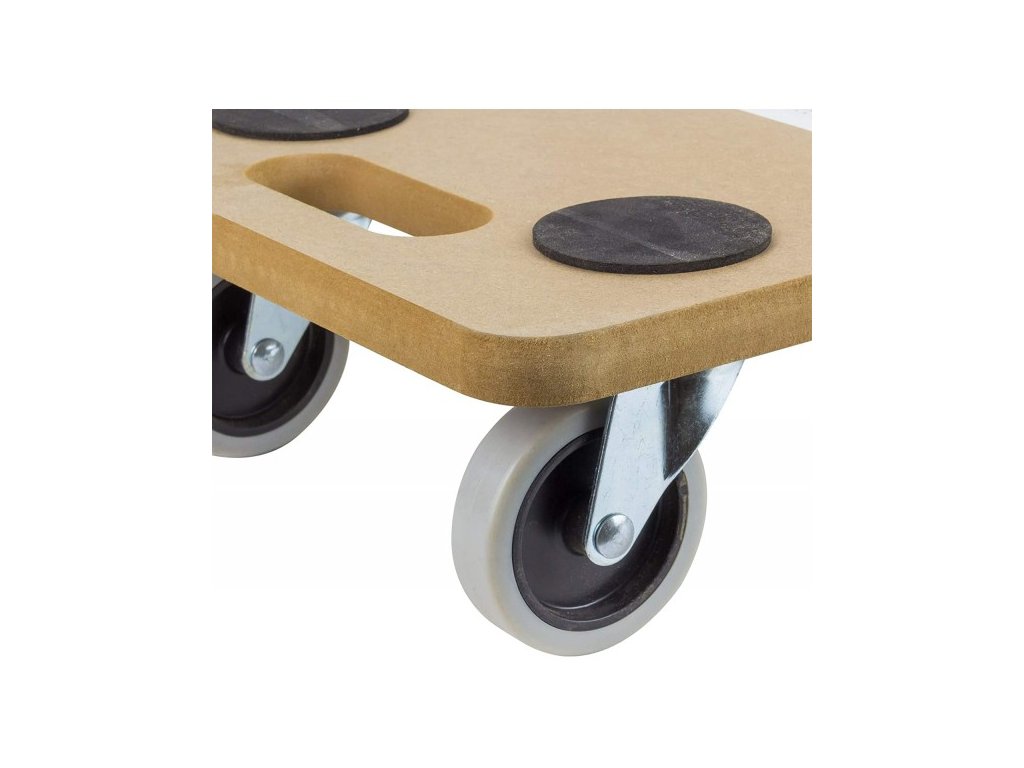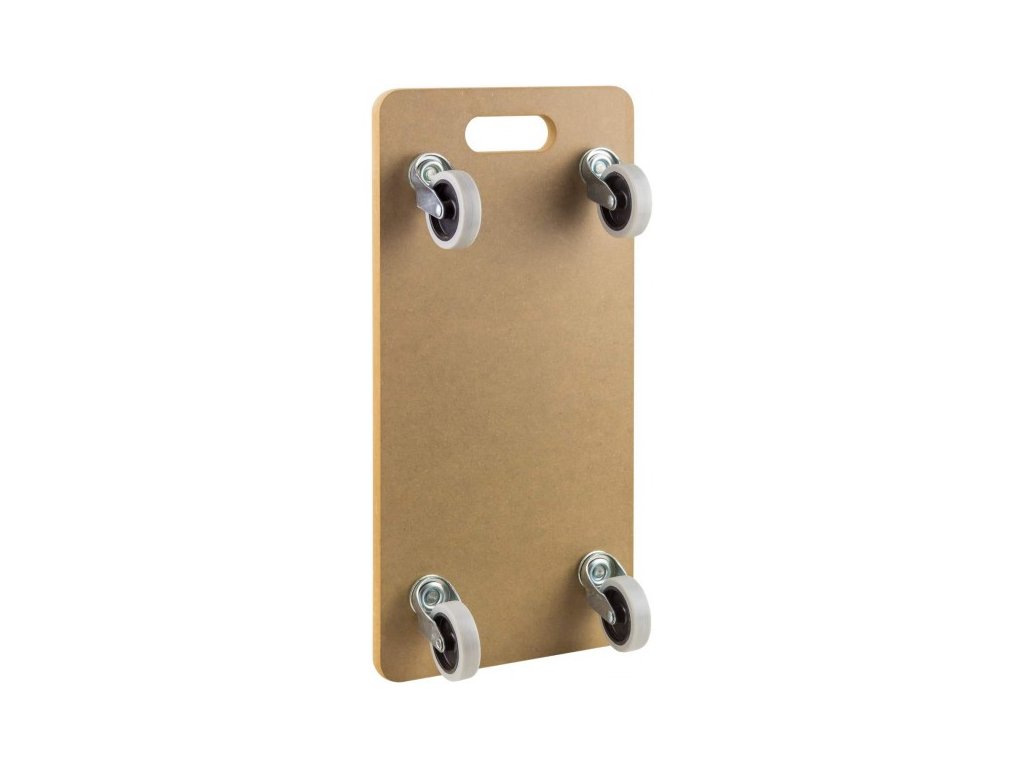 Pojazdná plošina na prenášanie veľkých predmetov, nábytku. Ľahký pojazd po lamináte aj dlažbe zabezpečujú štyri otočné kolieska. Podložka je vhodná aj pod kvetináče, nádoby na kvety a iné podobné účely. Výrez na jednoduché prenášanie/zavesenie/skladovanie. MDF drevená doska so zaoblenými rohmi. S protišmykovou penovou gumovou vložkou. Dodáva sa zmontovaná.