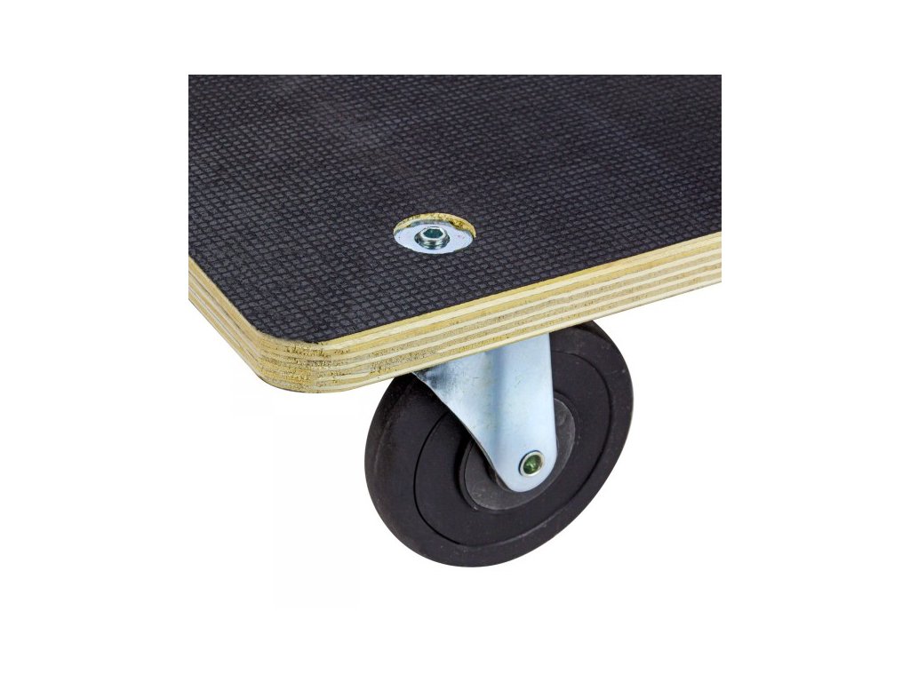 Pojazdná plošina s preglejkovou doskou potiahnutou z oboch strán fenolovou živicou na prenášanie veľkých predmetov, nábytku. Ľahký pojazd po lamináte aj dlažbe zabezpečujú štyri otočné kolieska. Podložka je vhodná aj pod kvetináče, nádoby na kvety a iné podobné účely. Výrez na jednoduché prenášanie/zavesenie/skladovanie. Preglejková doska so zaoblenými rohmi. Dodáva sa zmontovaná.