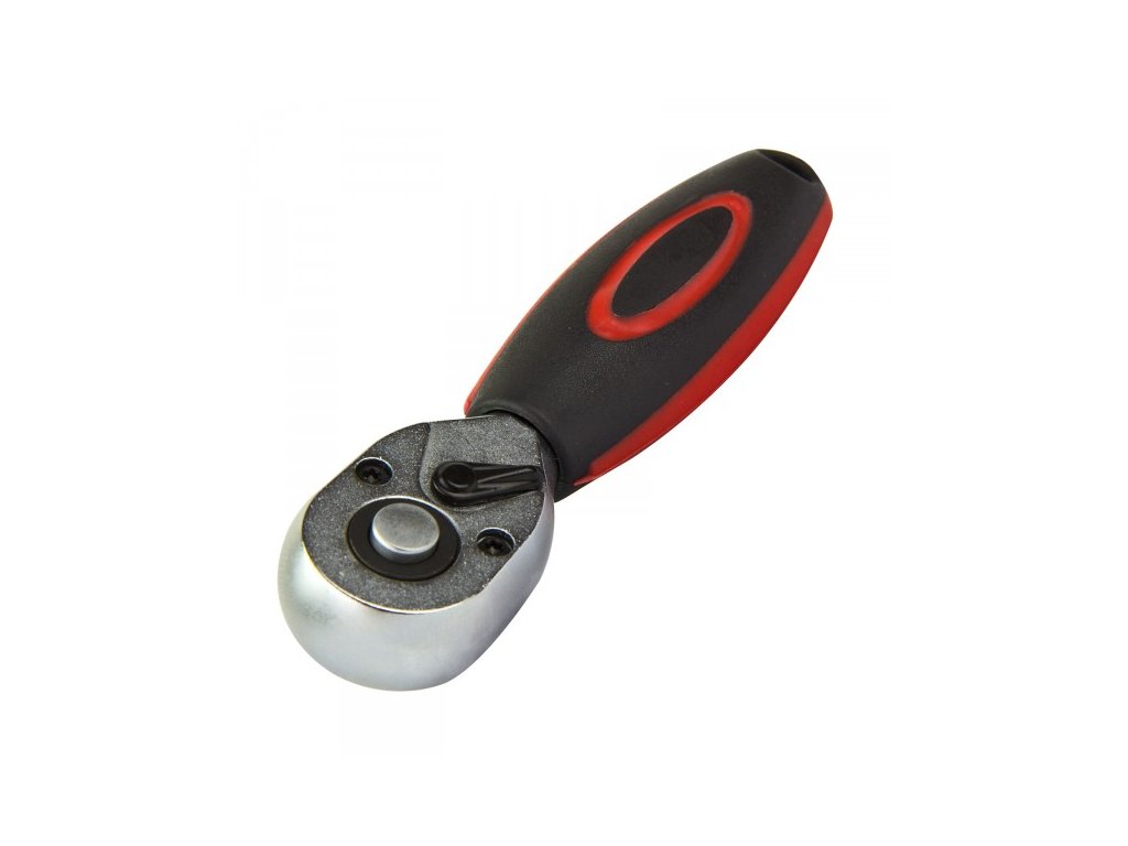 Krátka račňa so 72 zubami a dĺžkou 106 mm. Kombinácia jemného ozubenia (s vratným uhlom 5°) a krátkeho tvaru pre prácu v oblastiach s nedostatkom miesta. vyhotovená z chróm-vanádiovej ocele. Bezpečnostné blokovanie so systémom QUICK RELEASE. Račňa 1/4" 72 zubov