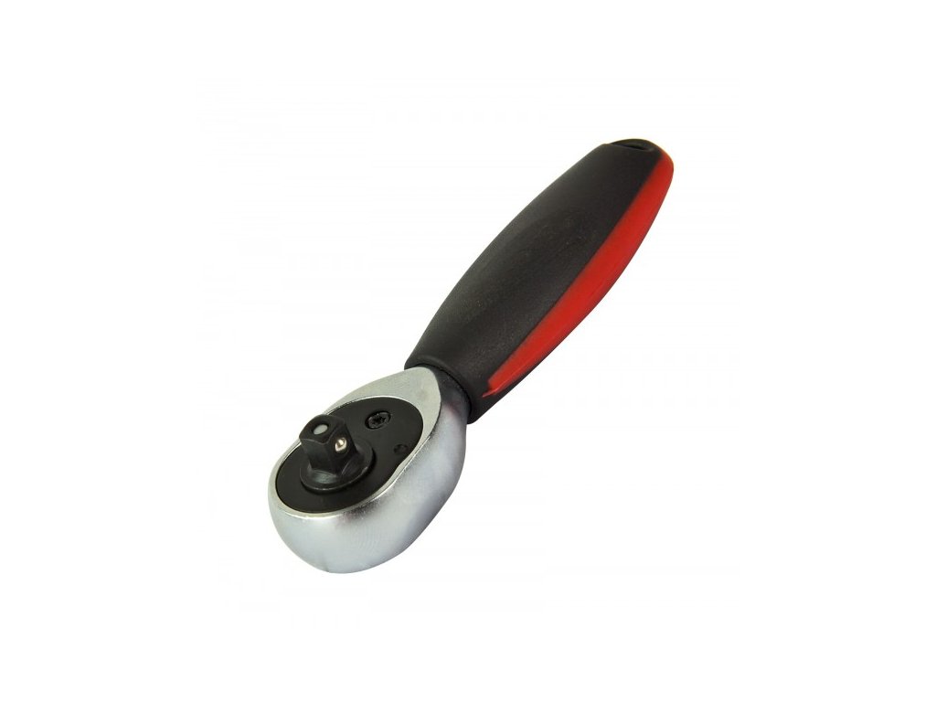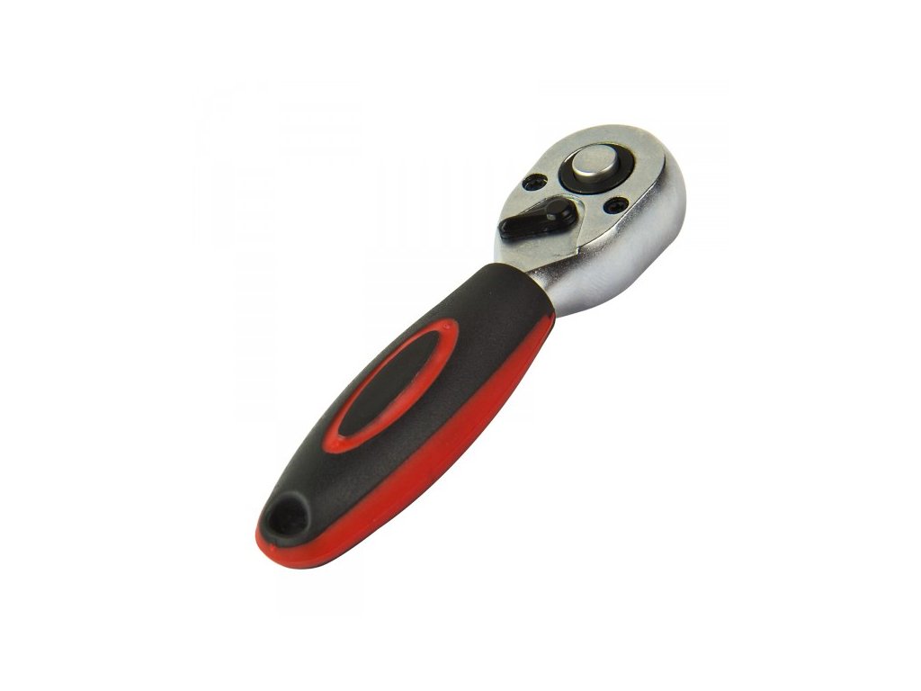 Krátka račňa so 72 zubami a dĺžkou 106 mm. Kombinácia jemného ozubenia (s vratným uhlom 5°) a krátkeho tvaru pre prácu v oblastiach s nedostatkom miesta. vyhotovená z chróm-vanádiovej ocele. Bezpečnostné blokovanie so systémom QUICK RELEASE. Pogumovaná rukoväť, chod vpravo/vľavo výkyvnou pákou, so závesným očkom.