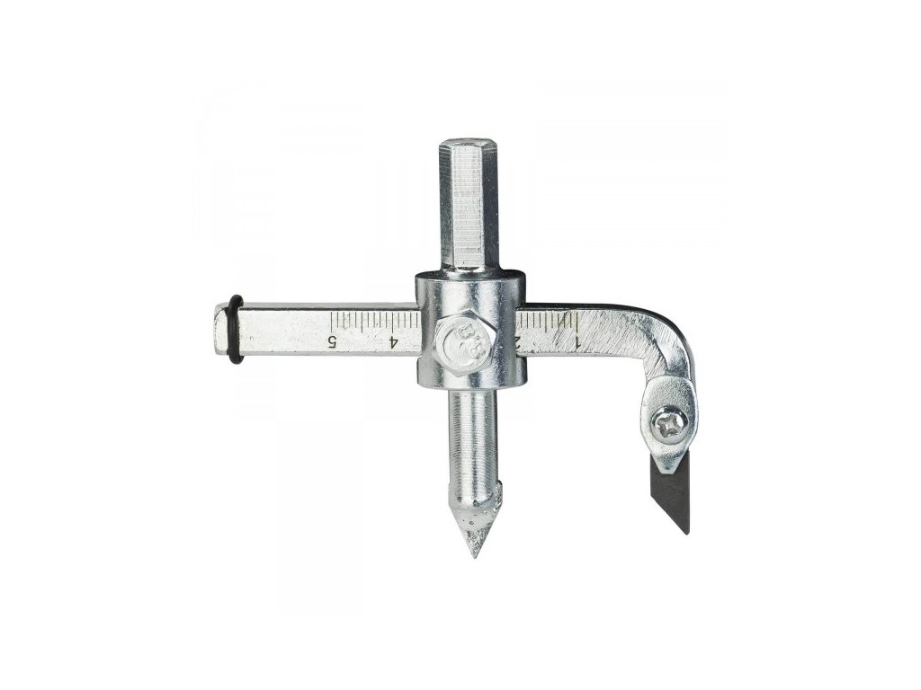 Rezačka na rýchle a presné rezanie otvorov do dlažby. Vymeniteľná tvrdokovová čepeľ. Plynule prestaviteľná pomocou vidlicového kľúča. Stupnica v cm. Upínanie na šesťhran – vhodné pre každú vŕtačku. Celokovová, pozinkovaná.