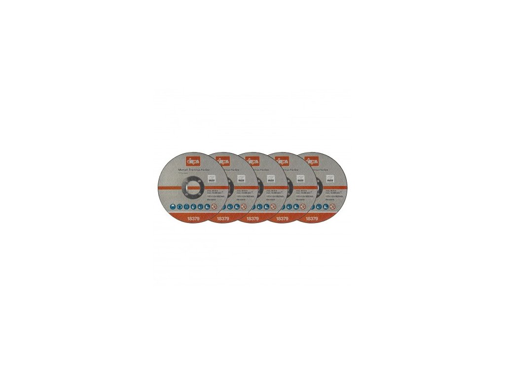 Rezací kotúč na kov do bežných uhlových brúsok so 115 mm kotúčom. Vhodný na nehrdzavejúcu oceľ, oceľ, tenkostenné rúry, profilové plechy, plasty. Tenký rez bez trhlín. V balení 5 ks.