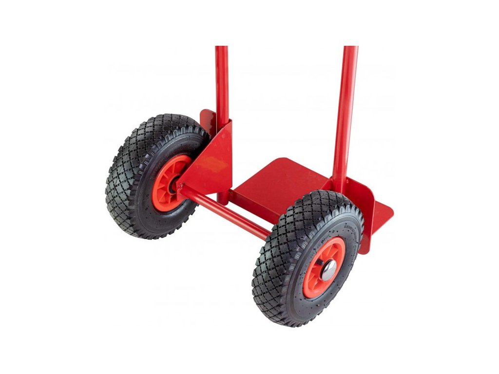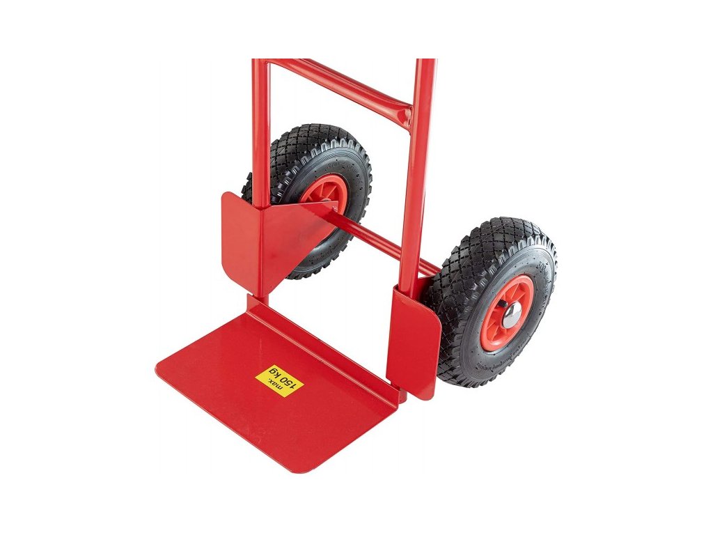 Vozík s maximálnym zaťažením 150 kg, kovová konštrukcia ošetrená práškovou farbou a smaltovaná, veľké vzduchové kolesá s valčekovými ložiskami, plastovými ráfikmi, kovové kryty kolies, chrániče rúk. Ideálne ťažisko nákladu. Rudla so vzduchovými kolesami do 150 kg