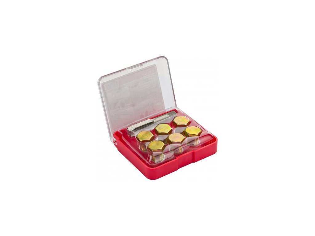 Súprava na opravu olejových vaní. Pomocník pri opravách závitov olejovej vane. Nie je potrebná demontáž olejovej vane, stačí vyrezať nový závit a pripevniť vypúšťaciu skrutku s tesnením. Set je vhodný pre hliníkové, oceľové, liatinové a všetky plastové olejové vane. Vhodný na motorové vozidlá s M12 závitom.