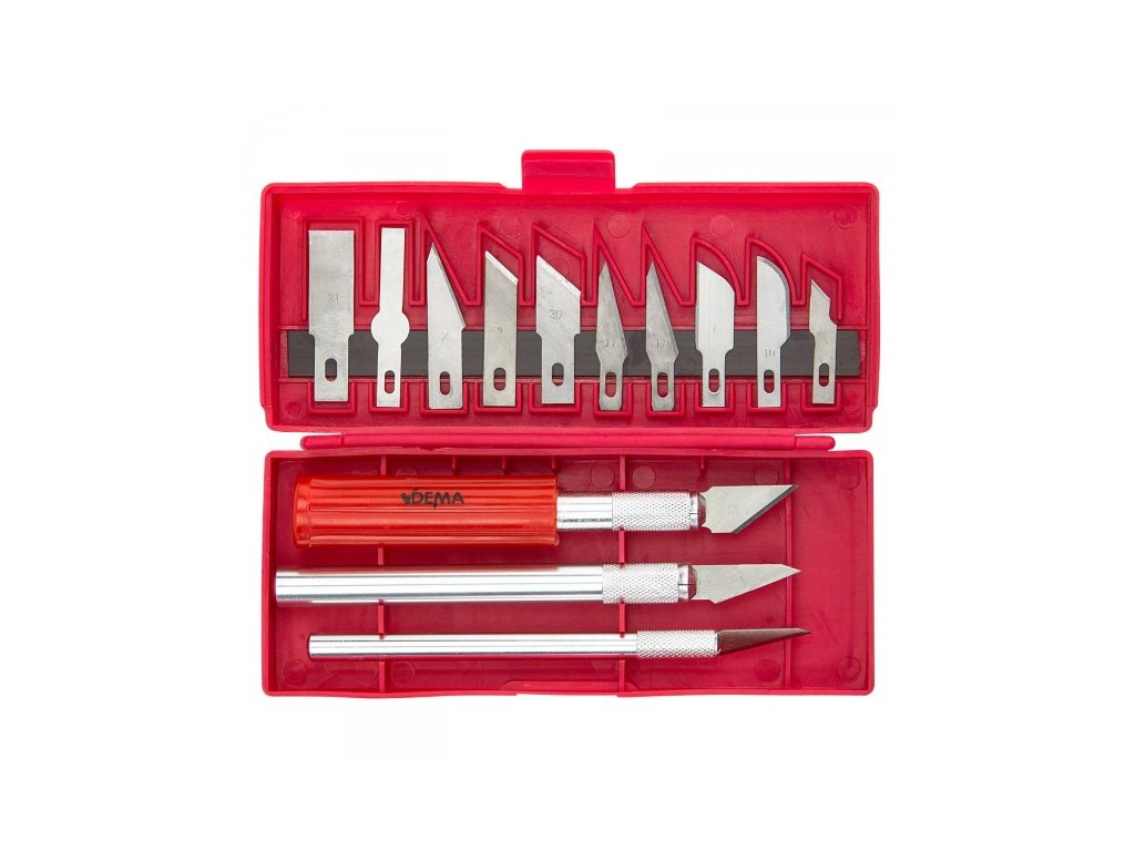 Praktická 16-dielna sada remeselných hobby nožov s hliníkovým držiakom. Všetko prehľadne uložené v praktickom plastovom boxe. Nenahraditeľné pri všetkých hobby prácach, modelovaní, službách, umení, jemnej mechanike. Vybavenie: