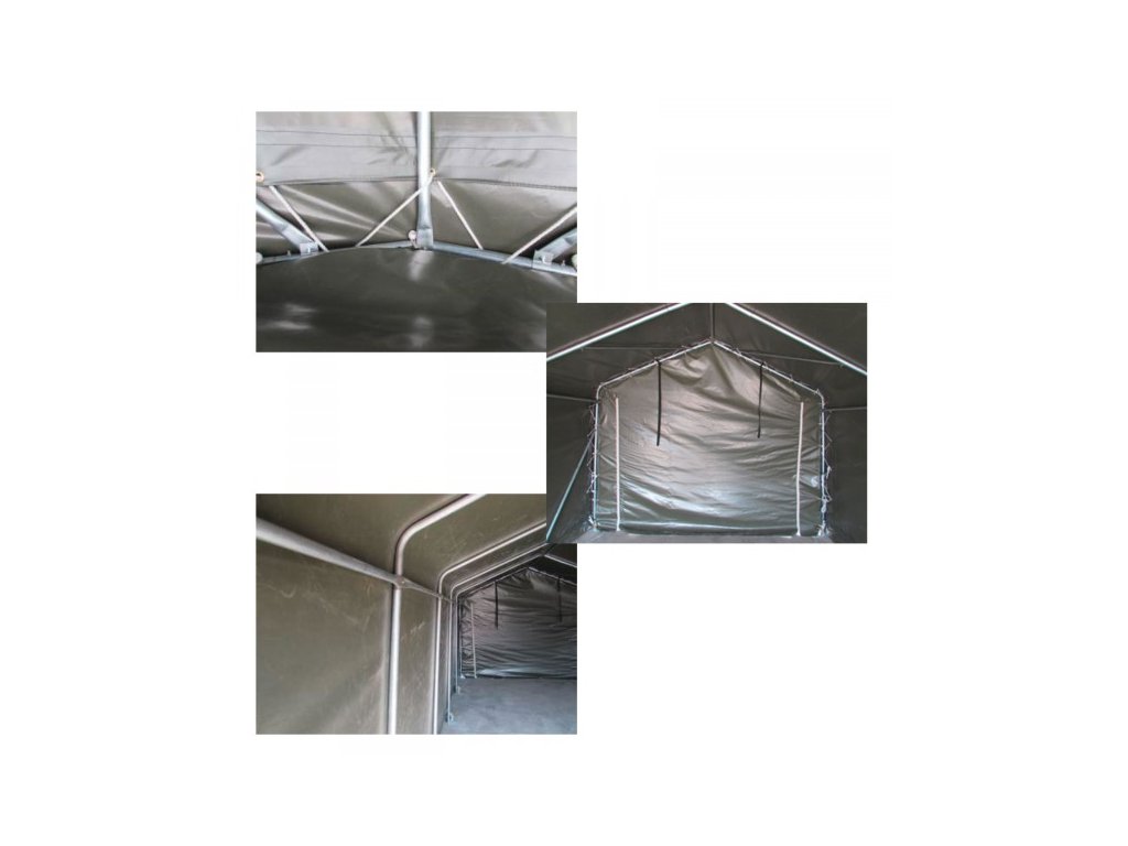Skladovací stan Norwich je vhodný aj ako priestranný pastiersky stan v poľnohospodárstve, dá sa využiť ako skladový stan na stavbe alebo v priemysle. Rýchlo postavený a zase poskladaný. Hrubá plachta. Pozinkovaná konštrukcia s dlhou životnosťou. 2 veľké brány (vpredu aj vzadu), bez okien.