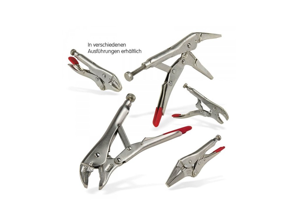 Škripcové kliešte s predĺženými čeľusťami sú nenahraditeľným pomocníkom v dielni, výrobe, pri opravách a podobne. Extra krátka dĺžka umožňuje flexibilnejšie a rýchlejšie upnutie. Špeciálna pochrómovaná oceľ, pogumovaná bezpečnostná páčka, nitované.