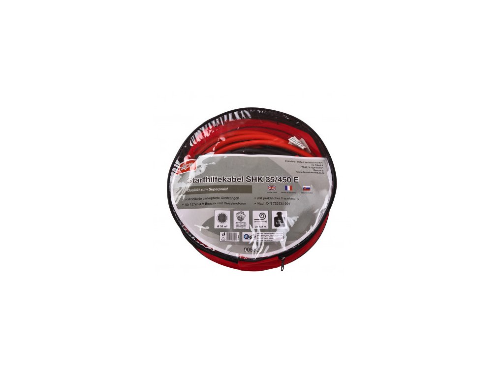 Pri problémoch so štartovaním sú potrebné dobré štartovacie káble. Pomedené drôty, vysoký prúdový tok, flexibilné, obidve svorky izolované, vyrobené podľa normy DIN 72553-1994. V taške na prenášanie. Štartovacie káble 4,5 m 35 mm² 480 A SHK35/450E