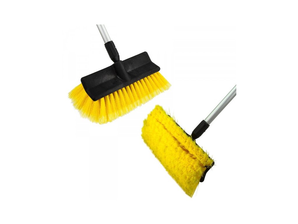 Ľahká umývacia kefa s hliníkovou teleskopickou násadou určená na umývanie karavanov, obytných automobilov, nákladných vozidiel, autobusov, traktorov, lodí, osobných vozidiel a podobne. Hodí sa aj na umývanie garáží a terás. V prípade potreby sa dá veľmi rýchlo vytiahnuť až na maximálnu dĺžku dvoch metrov. Mimoriadne široká, na konci s umývacou metličkou – pre extra dôkladné čistenie bez poškodenia laku, na násade je umiestnená páčka na zastavenie vody. Ergonomická manipulácia vďaka rukoväti z penovej gumy. Hodí sa na každú, bežne dostupnú hadicovú spojku. Odolná voči čistiacim prostriedkom.