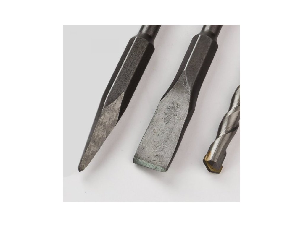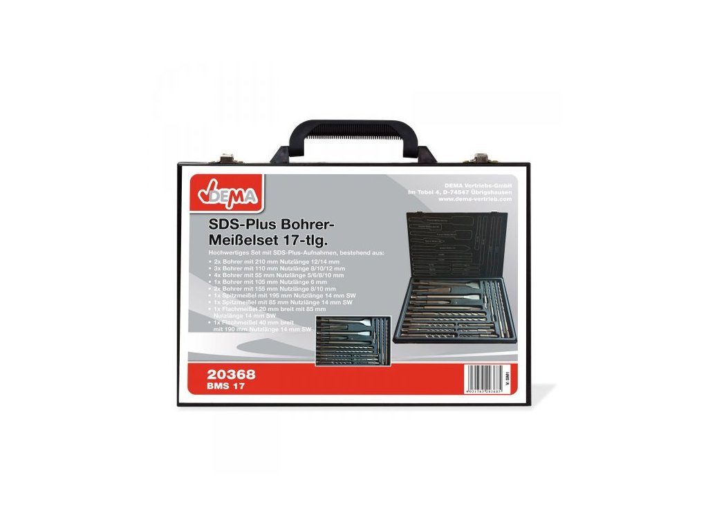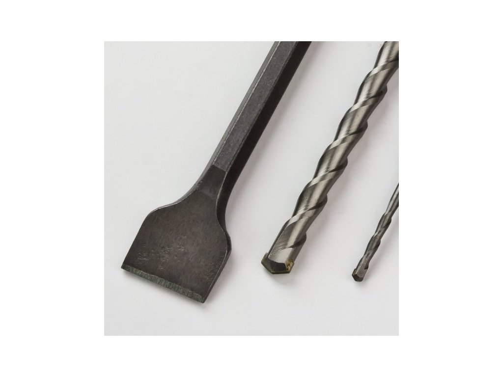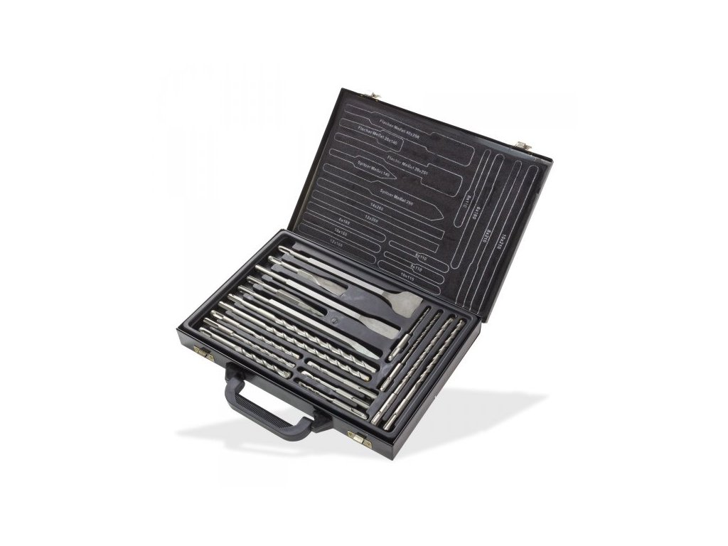 17-dielna sada SDS-plus vrtákov a sekáčov v praktickom kovovom boxe. SDS – plus upínanie. Sada obsahuje: