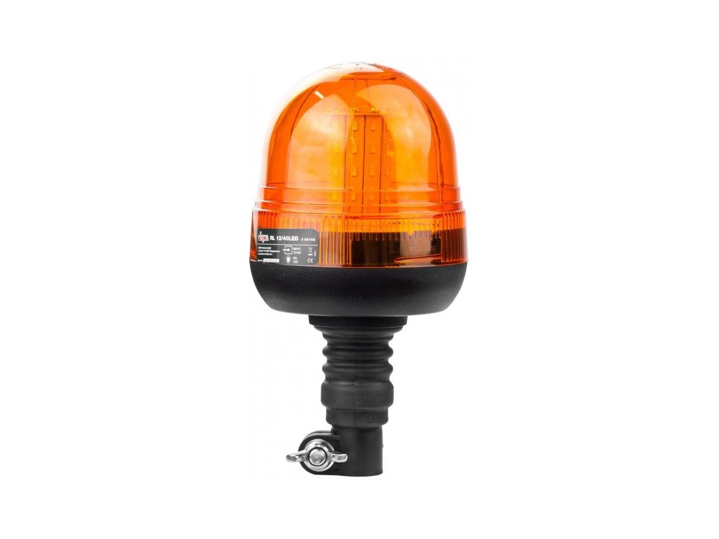 Maják s 3 možnosťami nastavenia – klasické otáčavé svetlo / 2 bliknutia za sekundu / 6 bliknutí za sekundu – nastavenie DIP vypínačom. 40 LED s dlhou životnosťou. Oranžový kryt odolný voči otrasom. Flexibilná hlava. Prípojka: 12 V DC