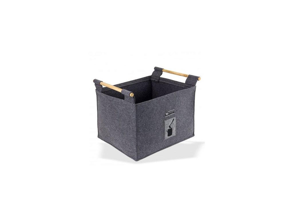 Praktický kôš na drevo Bregenz ku krbu alebo kachliam. Drží tvar, vyrobený z filcu. Čisté spracovanie, pekný dizajn, drevené rukoväte, nízka hmotnosť.
