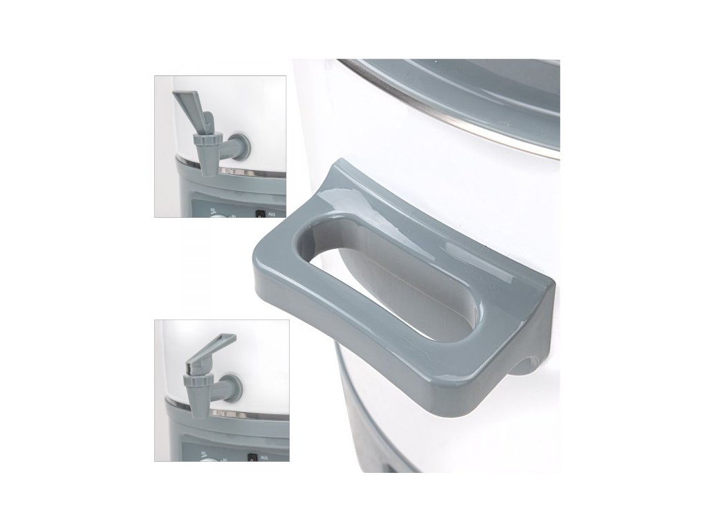 Elektrický hrniec s časovačom a alarmom. Pripravte si lahodný punč, varené víno alebo kávu ako na trhoch, oslavách a iných podujatiach. Uvarte si chutný guláš, chrumkavú klobásu alebo zdravú zeleninu. Výkonná elektrická špirála, veľká nádoba, zabudovaný časovač, termostat, s možnosťou zapnutia / vypnutia zvukového signálu pri dosiahnutí predvolenej teploty, plynulé nastavenie teploty s poistkou proti prehriatiu, jednoduché čistenie, vypúšťací kohútik, tepelne izolovaná rukoväť, kontrolky, PVC kryt s tepelne izolovanou rukoväťou, pogumované nožičky.