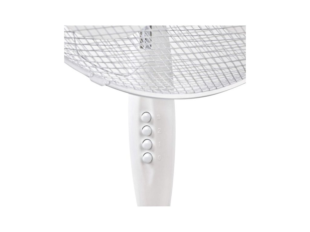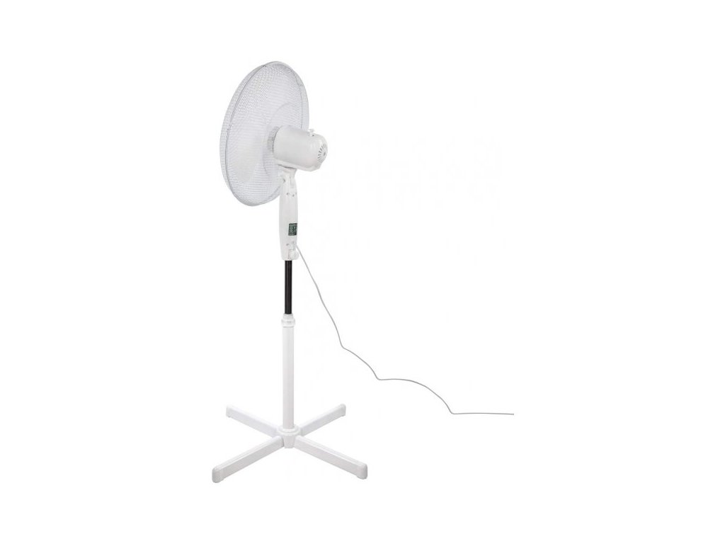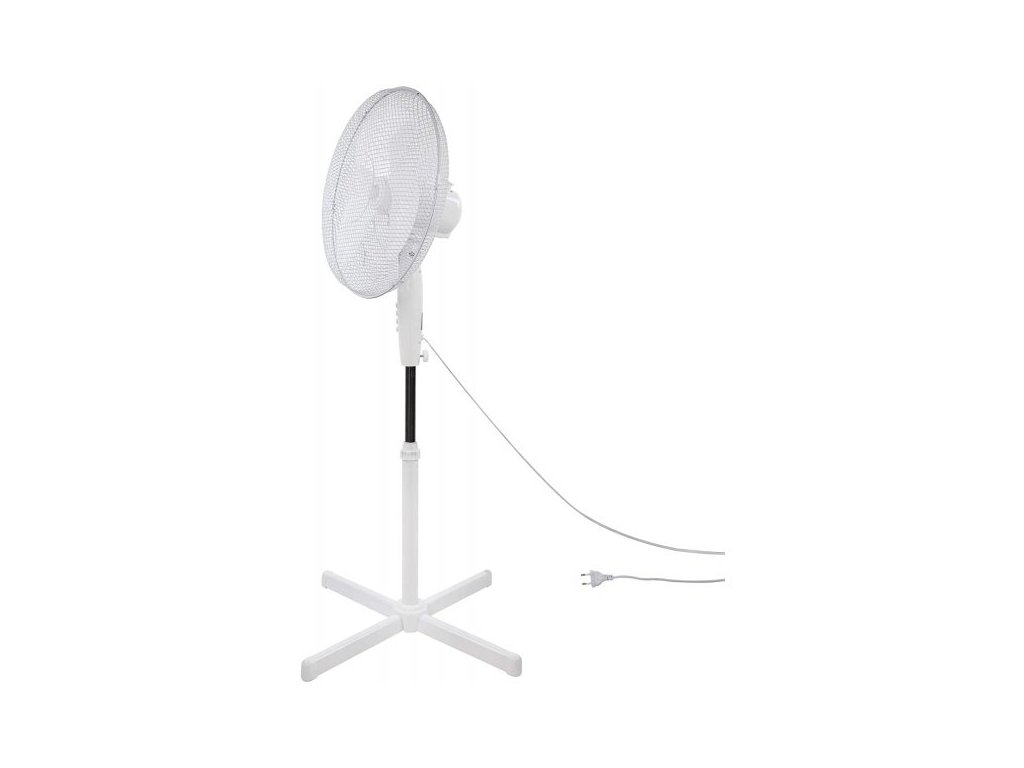 Ventilátor s tichým chodom, nízkou spotrebou energie. Podstavec s prestaviteľnou výškou od 103 do 125 cm. Horizontálna oscilácia = automatický otáčavý pohyb. Prestaviteľný vertikálny sklon. Tri rýchlostné stupne. Stojanový ventilátor 45 cm biely SV45